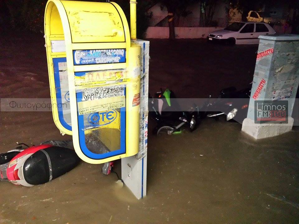 Πλημμύρες έχουν σημειωθεί σε αρκετές περιοχές της Μύρινας, ενώ μέχρι αυτή τη στιγμή η Πυροσβεστική έχει δεχτεί 5 κλήσεις για άντληση των υδάτων. Προβλήματα σημειώθηκαν και στην κυκλοφορία των οχημάτων.