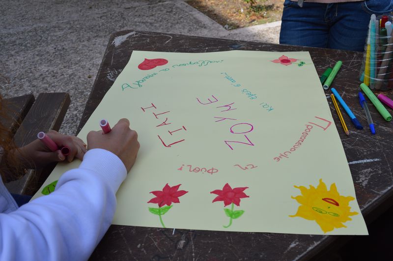 Τέλος, ένας μαθητής της Α'τάξης, ο Χοργκίτο, παράλλαξε τους στίχους ενός παιδικού τραγουδιού "Λύκε, λύκε είσαι εδώ" ώς εξής: