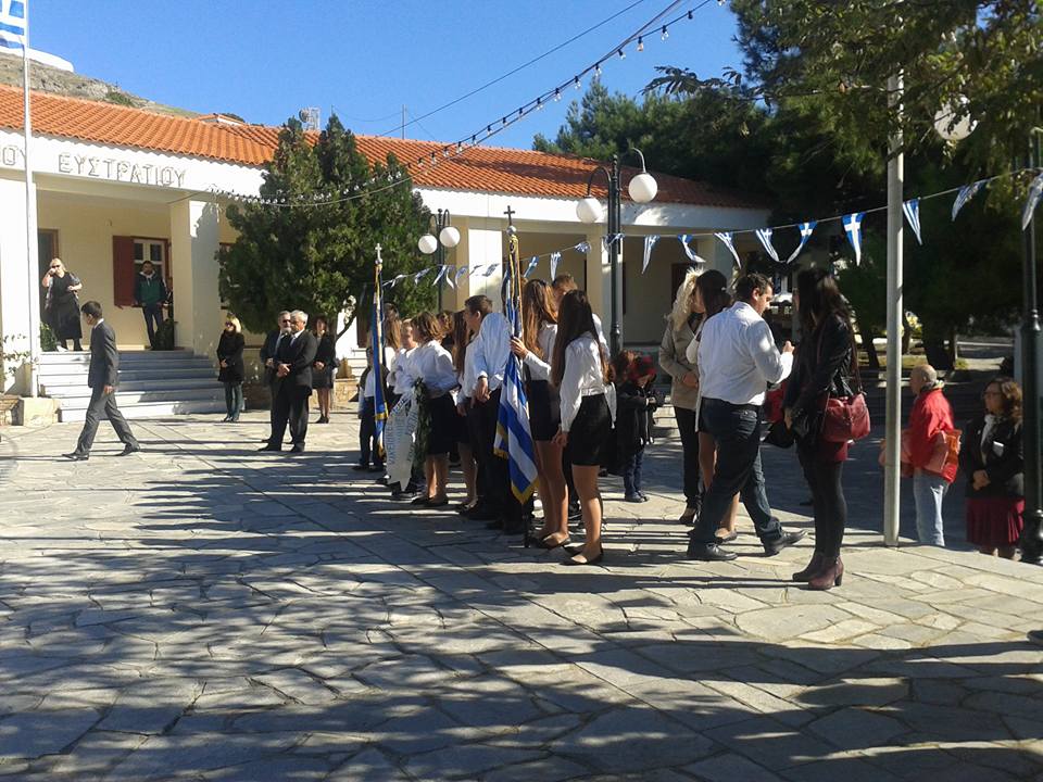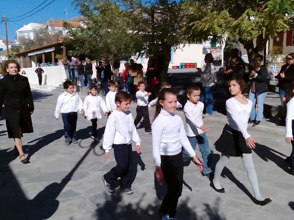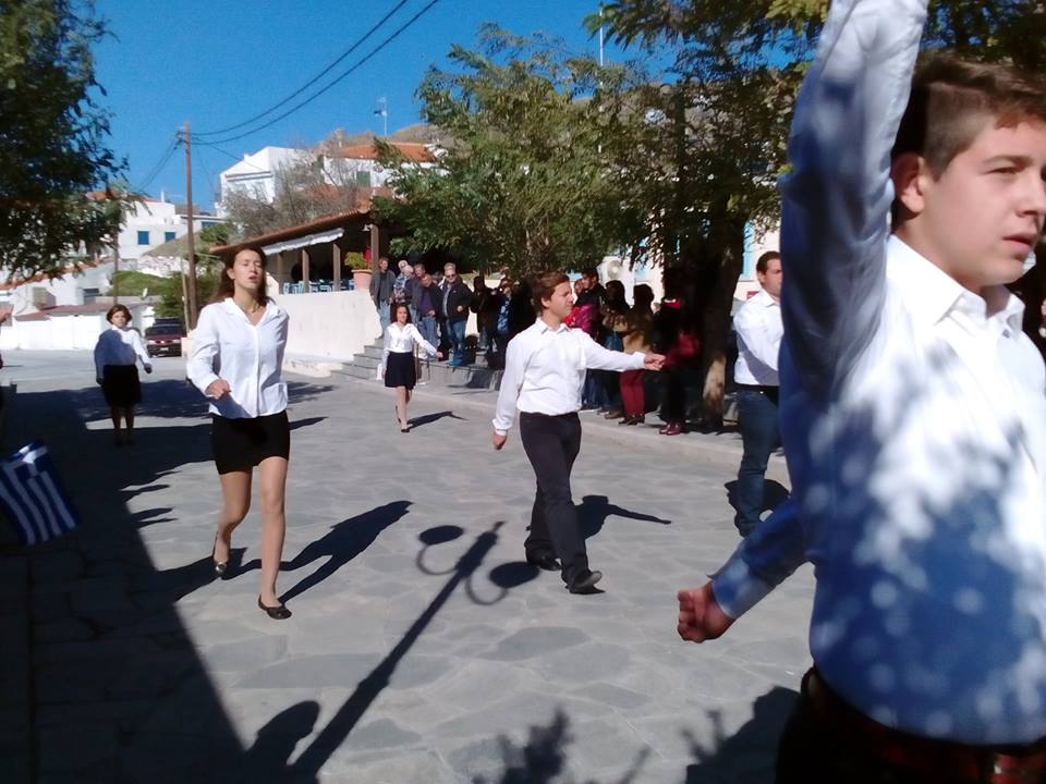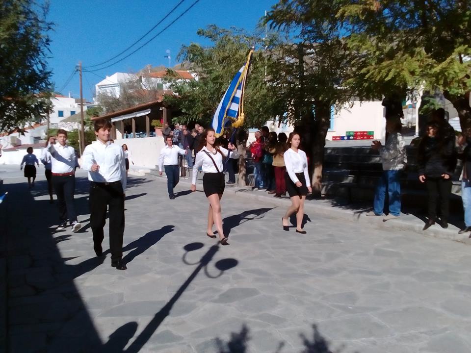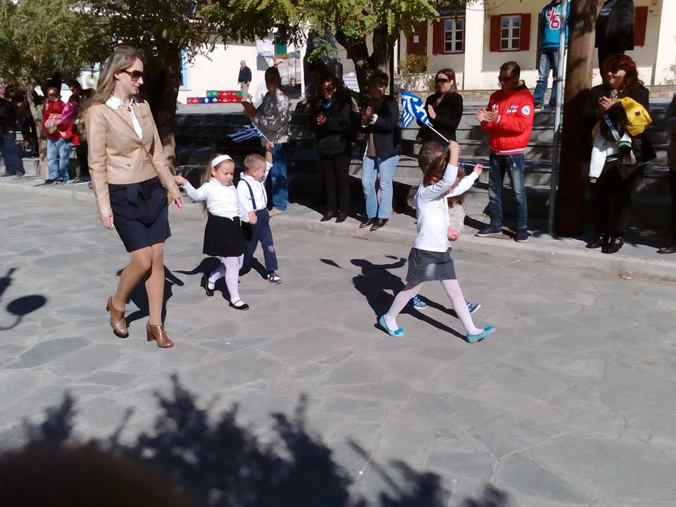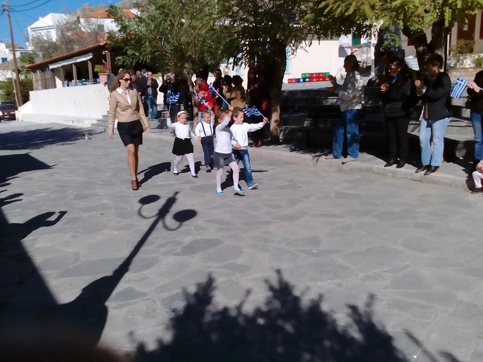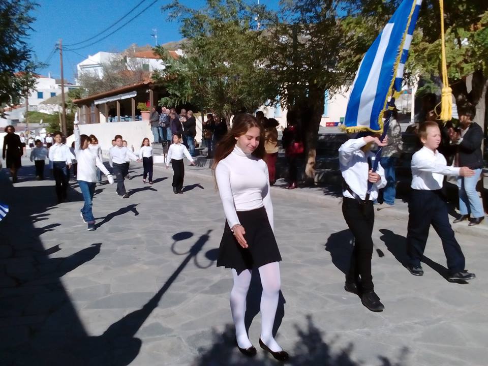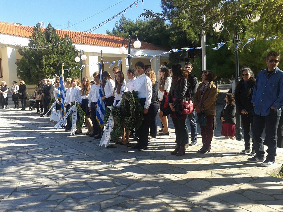 Μετά τη δοξολογία και την κατάθεση στεφάνων ακολούθησε η μαθητική παρέλαση με πιο συγκινητική στιγμή την ώρα της απαγγελίας του Εθνικού Ύμνου.