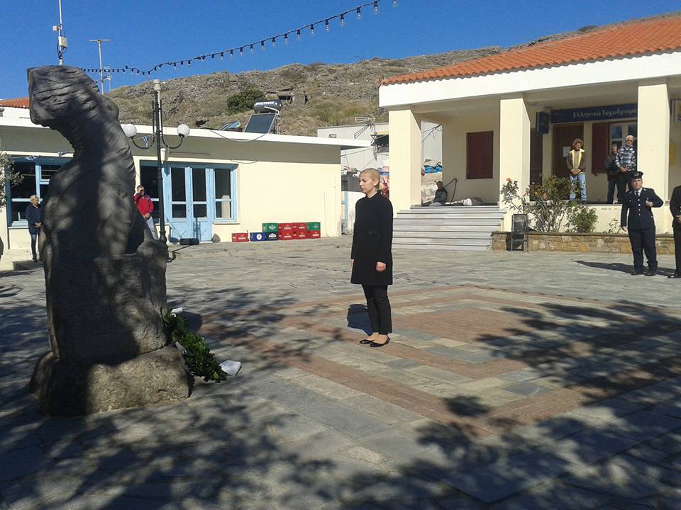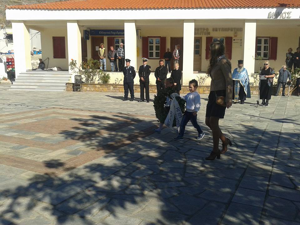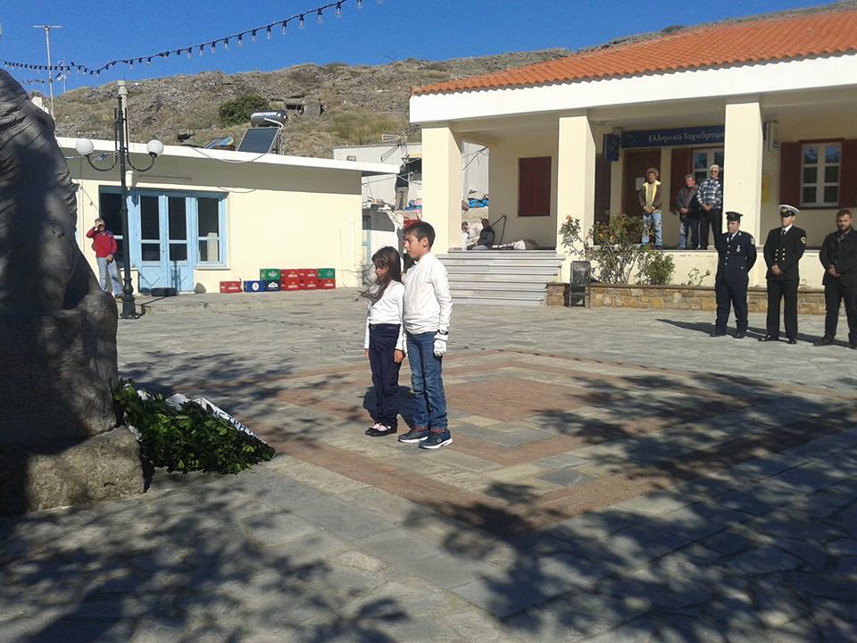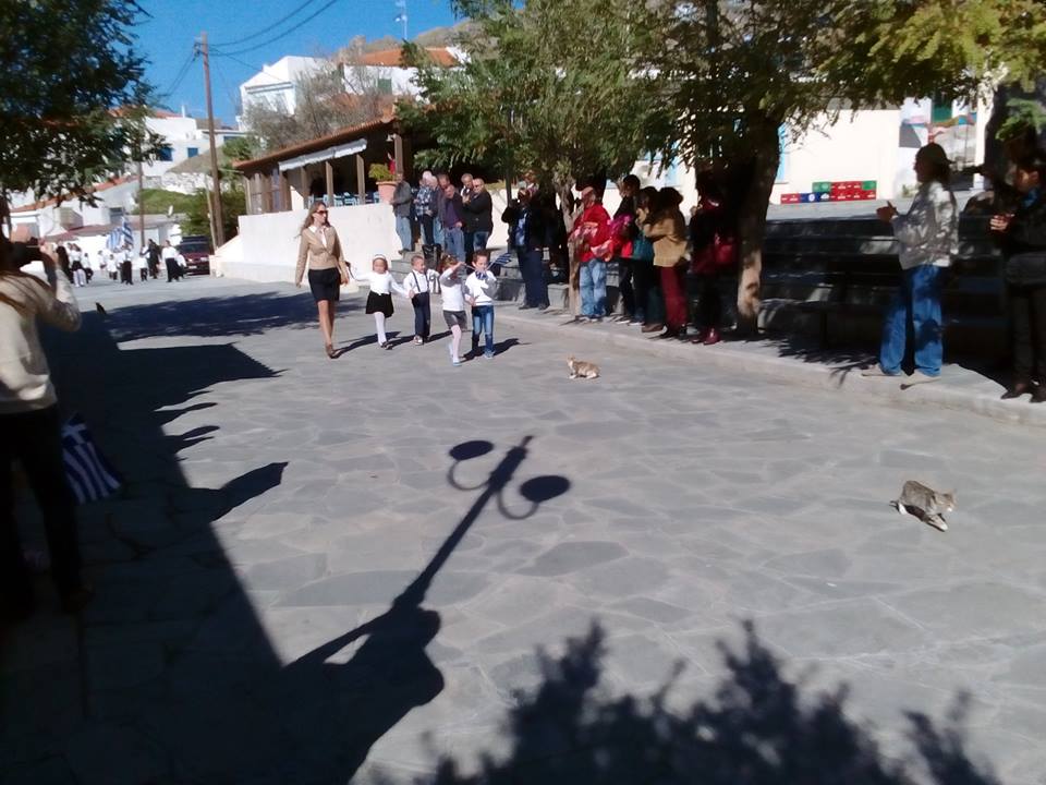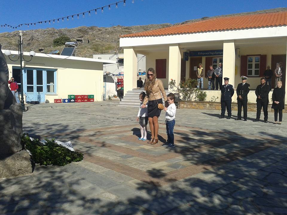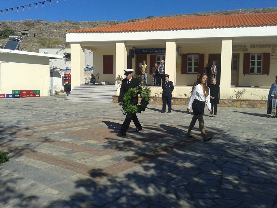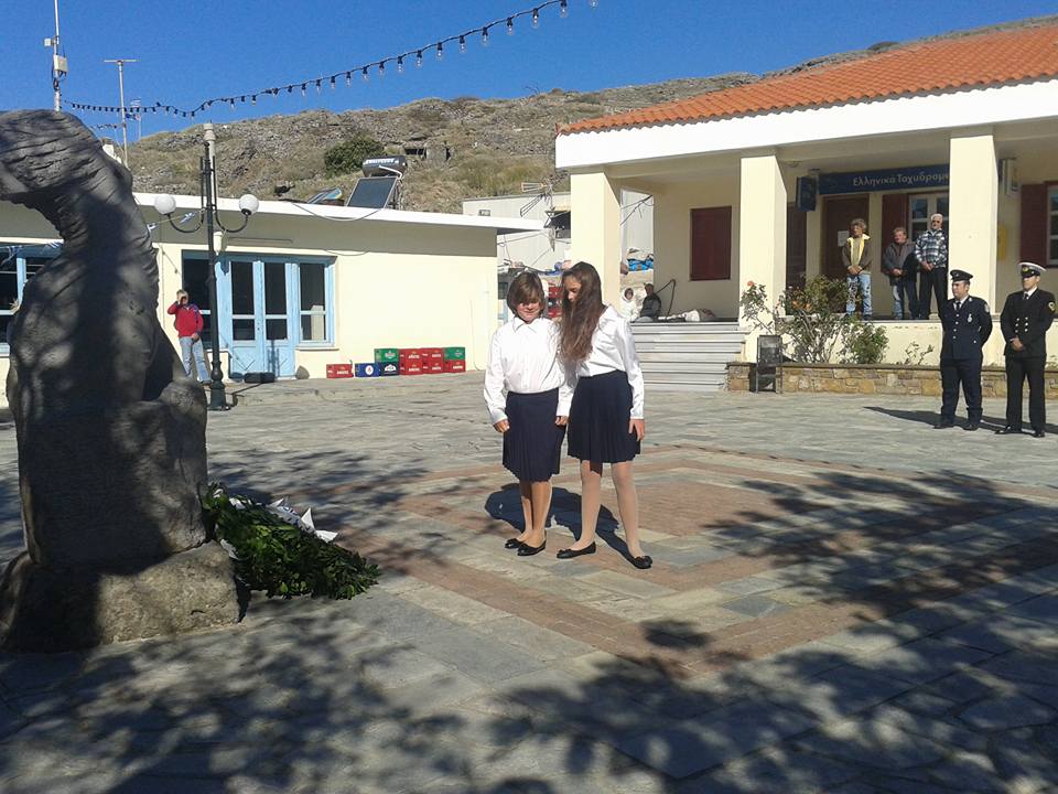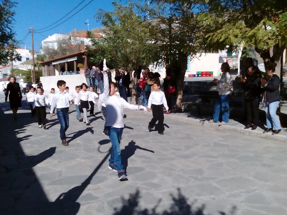 Μετά τη δοξολογία και την κατάθεση στεφάνων ακολούθησε η μαθητική παρέλαση με πιο συγκινητική στιγμή την ώρα της απαγγελίας του Εθνικού Ύμνου.
