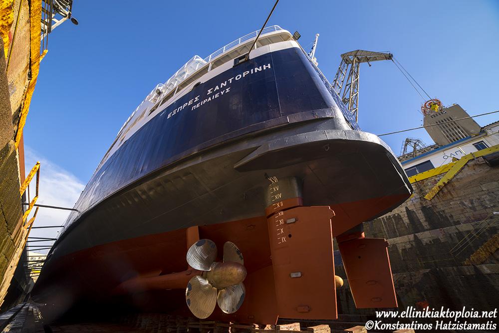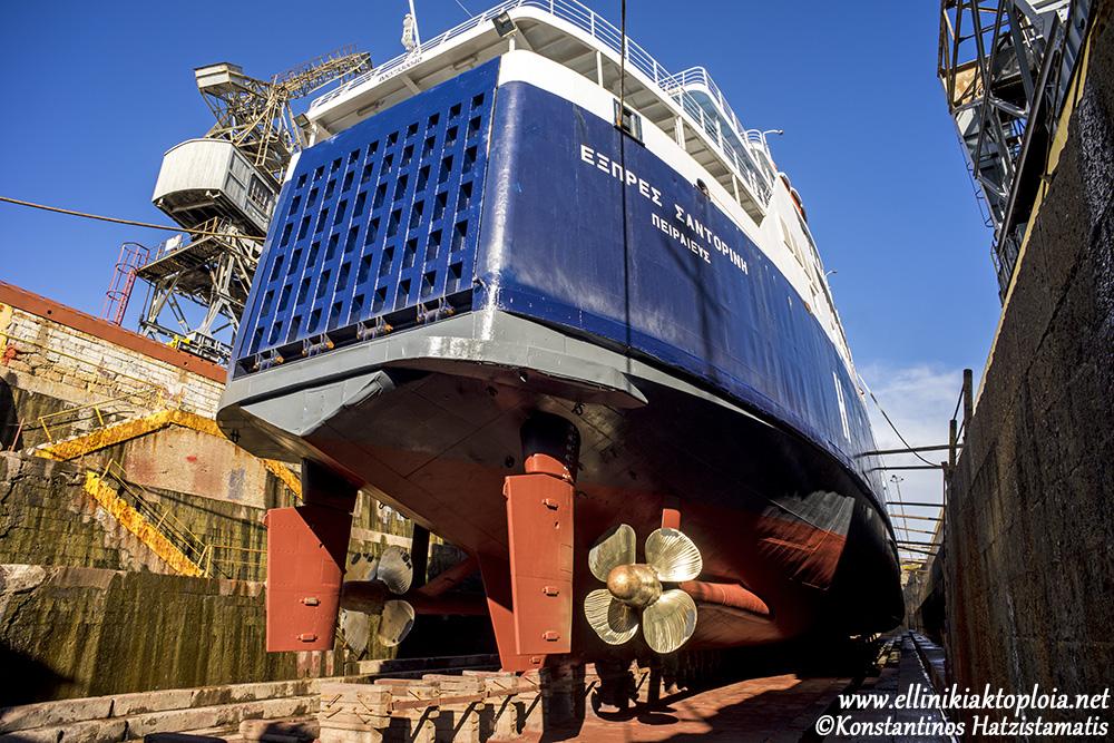 Το Εξπρές Σαντορίνη, αφού "ομόρφυνε" κατά την παραμονή του στην πέτρινη δεξαμενή "Βασιλειάδη" του ΟΛΠ, ολοκλήρωσε τον δεξαμενισμό και από τις 21 Δεκεμβρίου θα αντικαταστήσει το Εξπρές Πήγασος.