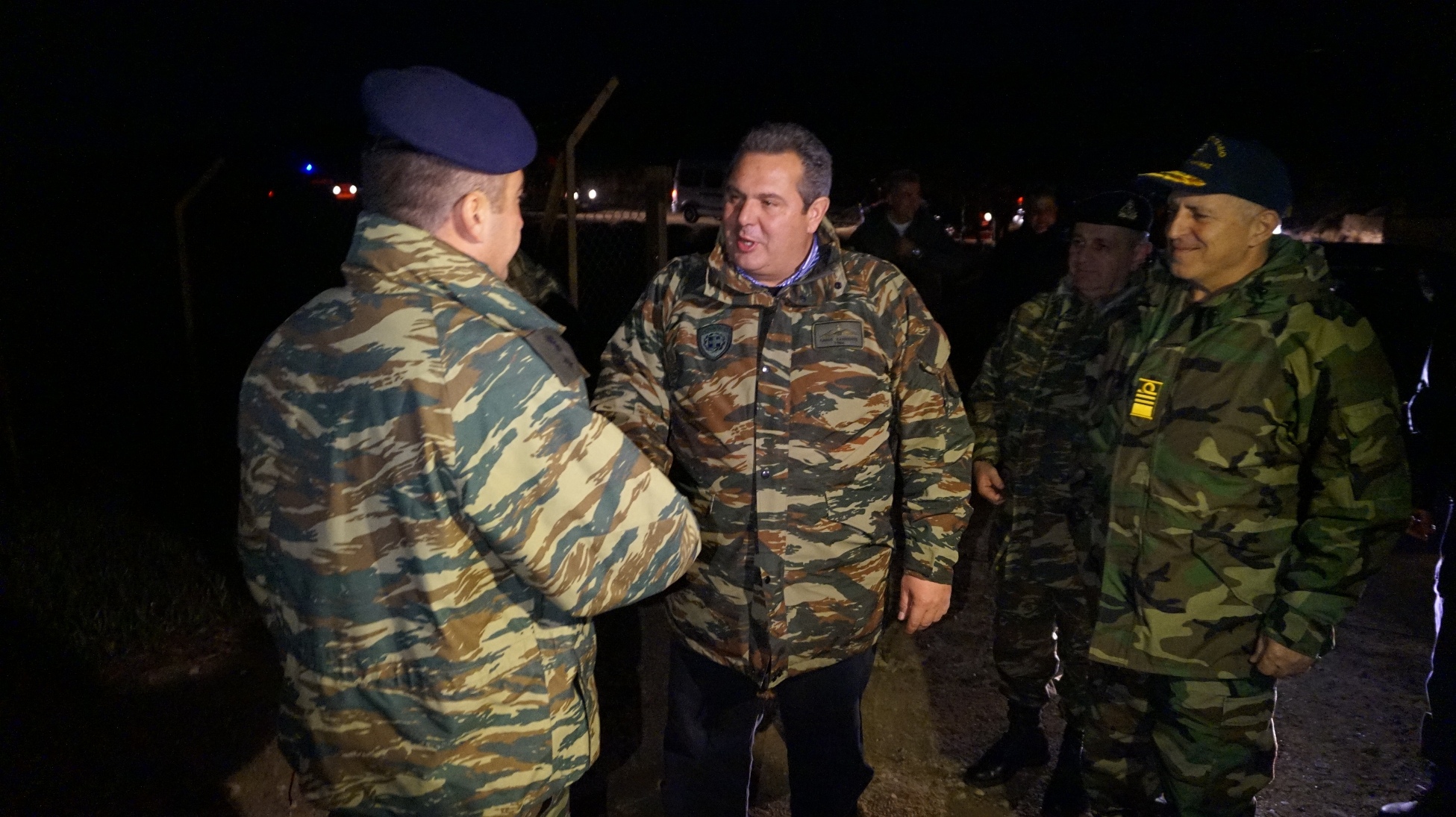 Θέλω μέσα από την καρδιά μου, εκ μέρους του Πρωθυπουργού, της Πολιτικής Ηγεσίας, του Υπουργείου Εθνικής Άμυνας, αλλά και του ελληνικού λαού να συγχαρώ όλο το στράτευμα, τους Αξιωματικούς, τους Υπαξιωματικούς, τους άνδρες και τις γυναίκες των Ενόπλων Δυνάμεων, που βρίσκονται εδώ σε μέρες εορτών, στο καθήκον, με υψηλό επαγγελματισμό, με υψηλό ηθικό, με αγάπη για την πατρίδα, μακριά από τις οικογένειές τους, προκειμένου να διαφυλάξουν την εθνική κυριαρχία και την εδαφική ακεραιότητα της Ελλάδος.
