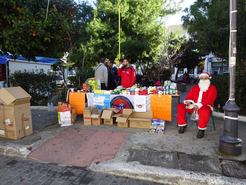 Από τις 9.00 το πρωί, μέλη των δύο συλλόγων βρίσκονται στην πλατεία Υψιπύλης (ΟΤΕ), όπου συγκεντρώνουν φάρμακα και τρόφιμα μακράς διάρκειας (ρύζι, μακαρόνια, όσπρια, γάλατα, λάδι, κονσέρβες, σάλτσες, ζάχαρη, καφέ, φρυγανιές , μπισκότα κ.α.), καθώς επίσης και ρούχα, ενώ παράλληλα προσφέρουν κεράσματα. Εκεί βρίσκεται και ο Άγιος Βασίλης, δίνοντας χριστουγεννιάτικη «νότα» στην σημαντική αυτή προσπάθεια.