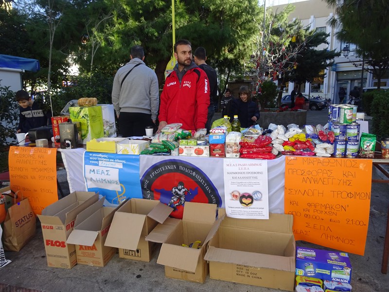 Τα φάρμακα θα δοθούν στο Νοσοκομείο Λήμνου και τα τρόφιμα θα διανεμηθούν σε οικογένειες που τα έχουν ανάγκη, μέσω των ποδοσφαιρικών ομάδων σε όλο το νησί, ενώ τα ρούχα θα σταλούν στη Λέσβο για να δοθούν στους πρόσφυγες.