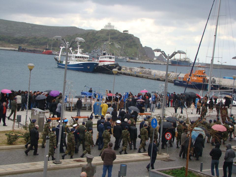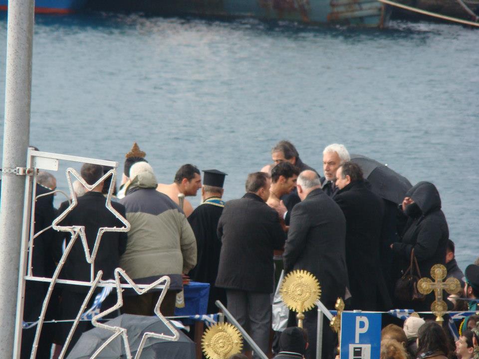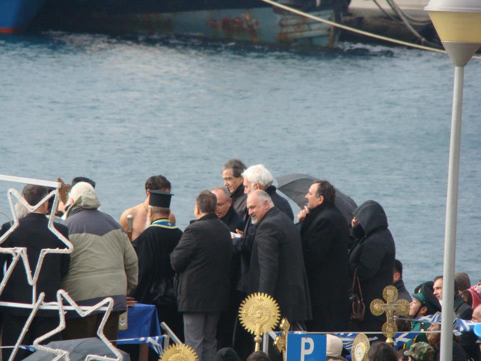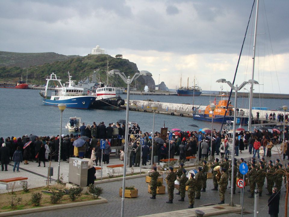 Ο Αγιασμός των Υδάτων και η ρίψη του Τμίου Σταυρού ξεκίνησαν στις 11 το πρωί χοροστατούντος του Μητροπολίτη Λήμνου κ Αγίου Ευστρατίου κ. Ιερόθεου και με την παρουσία του βουλευτή του ΠΑΣΟΚ στο νομό κ. Νίκου Σηφουνάκη, ο οποίος ούτε φέτος "έσπασε" το έθιμο χρόνων να παραβρίσκεται στη Λήμο ανήμερα των Φώτων.