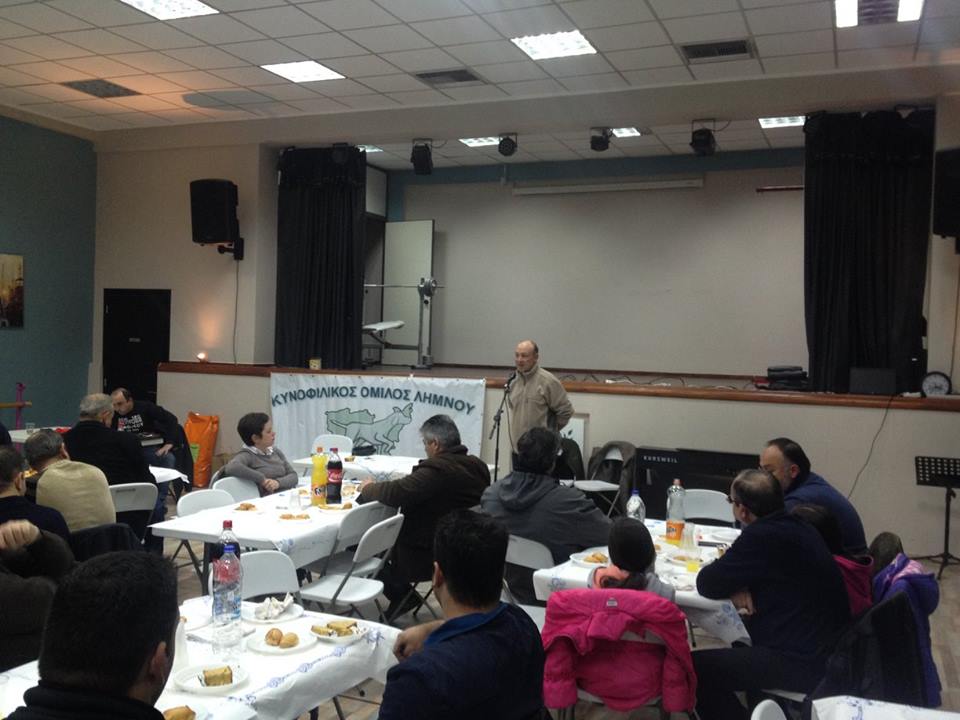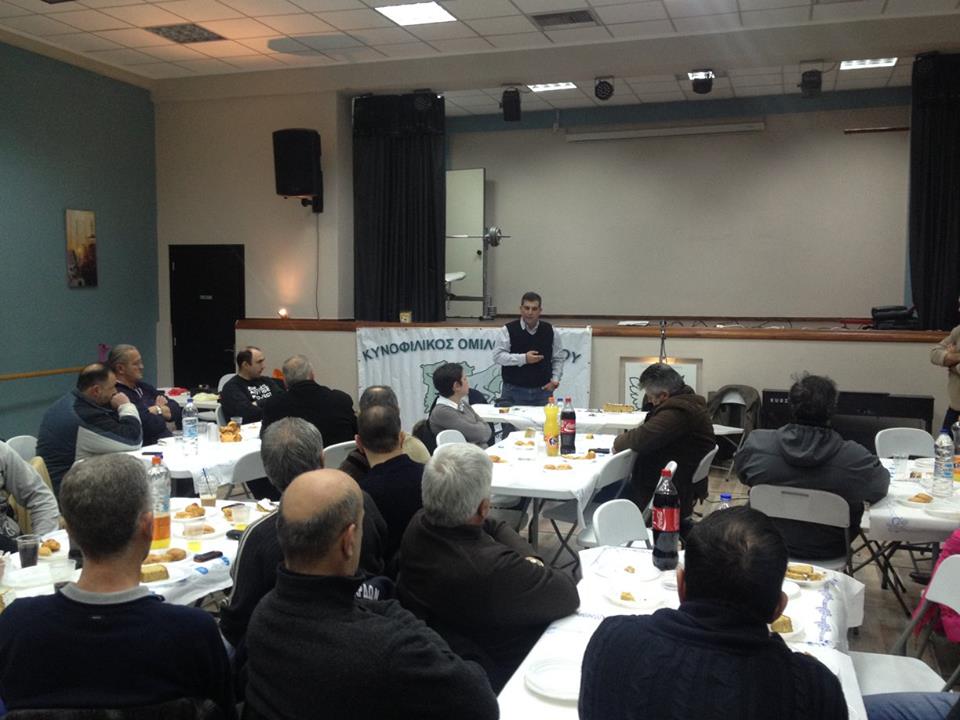 Ο κ. Γκουζούνας ως επίτιμος προσκεκλημένος της εκδήλωσης, μίλησε για το έργο του Ομίλου, καθώς και για τα επιτεύγματα της ελληνικής αγωνιστικής κυνοφιλίας, ενώ αμέσως μετά απάντησε με προθυμία σε ερωτήματα, αφήνοντας στα μέλη του Ομίλου τις καλύτερες εντυπώσεις.