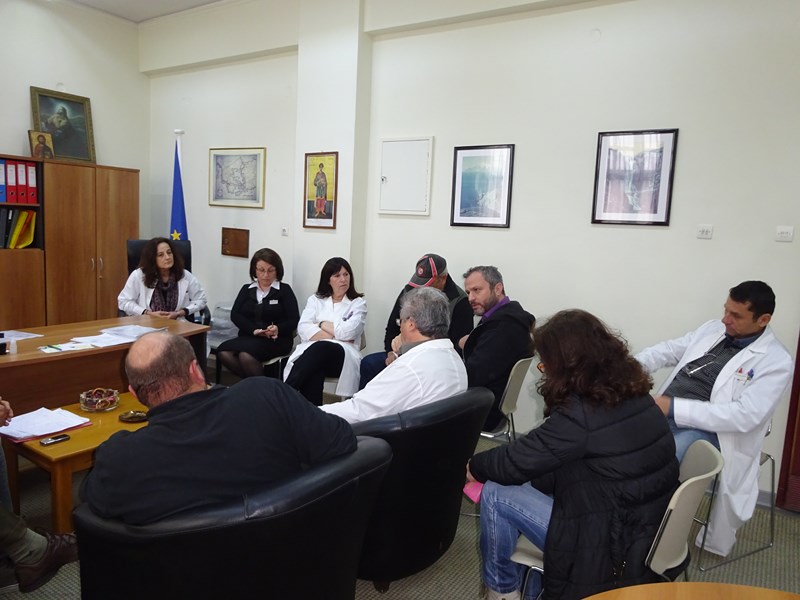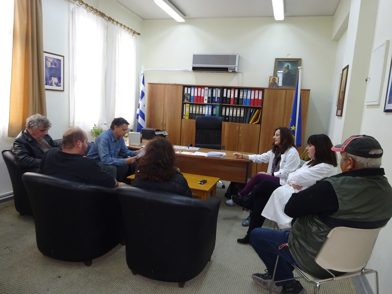 Λίγο μετά τις 10.30 εκπρόσωποι της ΑΔΕΔΥ, των ΟΤΑ, των οικοδόμων και συνταξιούχων του ΙΚΑ, πέρασαν τις πόρτες του Νοσοκομείου και συναντήθηκαν με την προσωρινή διοίκηση του, με μέλη της Ένωσης Ιατρών και με εκπροσώπους εργαζομένων, οι οποίοι και τους ενημέρωσαν για την ακριβή κατάσταση με κάθε λεπτομέρεια.