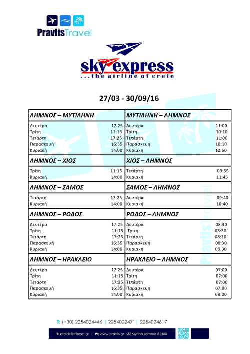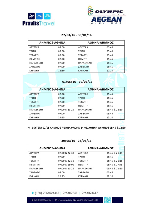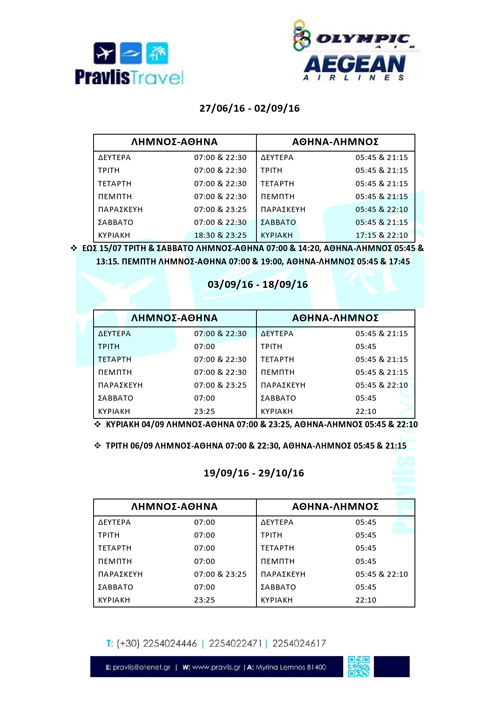 Με βάση την ανακοίνωση του ταξιδιωτικού πρακτορείου «Pravlis Travel» οι νέες ώρες διαμορφώνονται ως εξής: