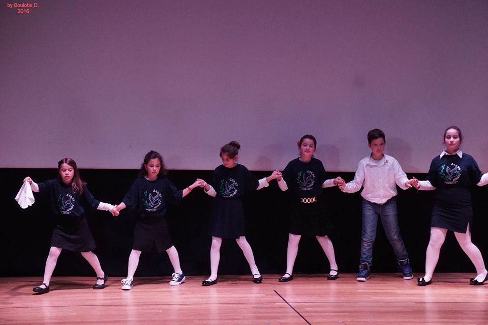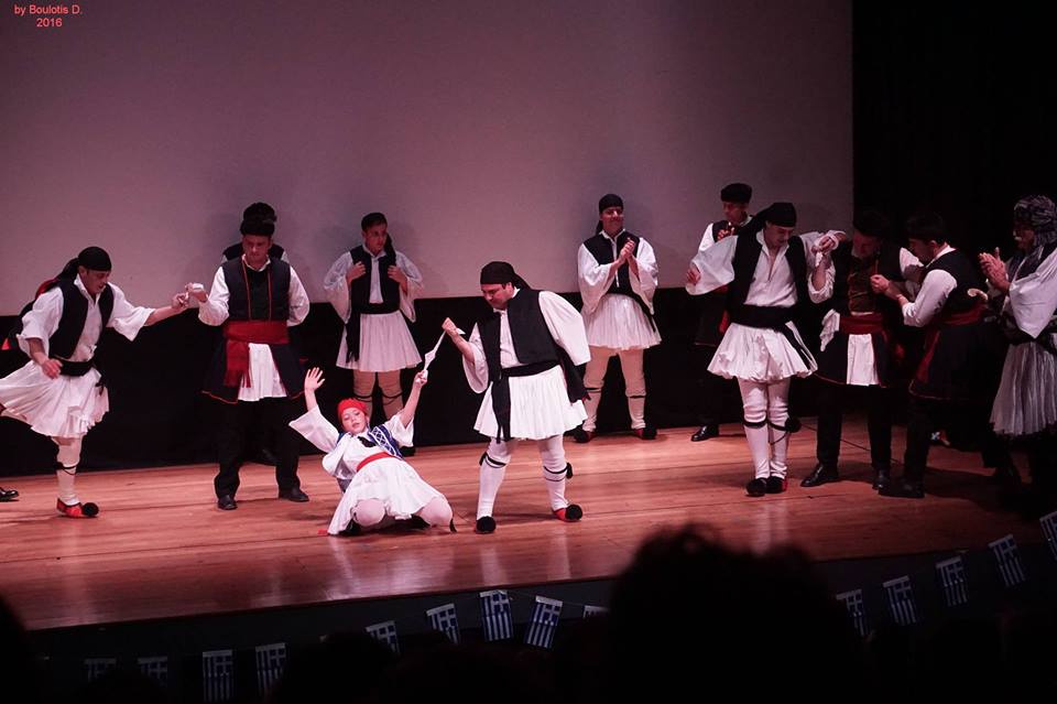"Ο ΓΑΣ ΜΥΡΙΝΑΣ με τη συμμετοχή εκατό μικρών και μεγάλων χορευτών πραγματοποίησε μεγαλειώδη επετειακή εκδήλωση για τον εορτασμό της 25ης Μαρτίου στο κατάμεστο Κινηματοθέατρο ΜΑΡΟΥΛΑ στις 24 Μαρτίου 2016.