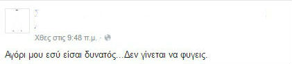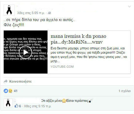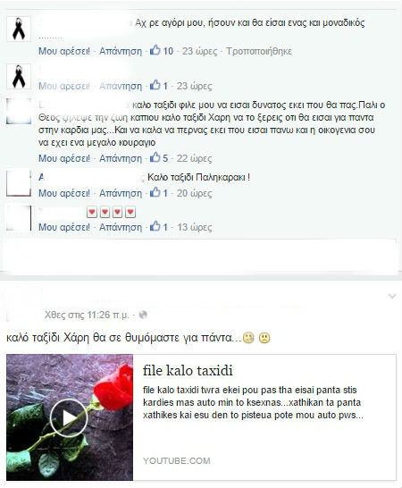 Αρκετοί θέλησαν να «μιλήσουν» στον άτυχο νέο και να του εκφράσουν για τελευταία φορά πώς νιώθουν. Να εκφράσουν τον πόνο και τη θλίψη που τους προκάλεσε η απώλεια του και το έκαναν, γράφοντας στον τοίχο του προσωπικού του προφίλ στο Facebook.