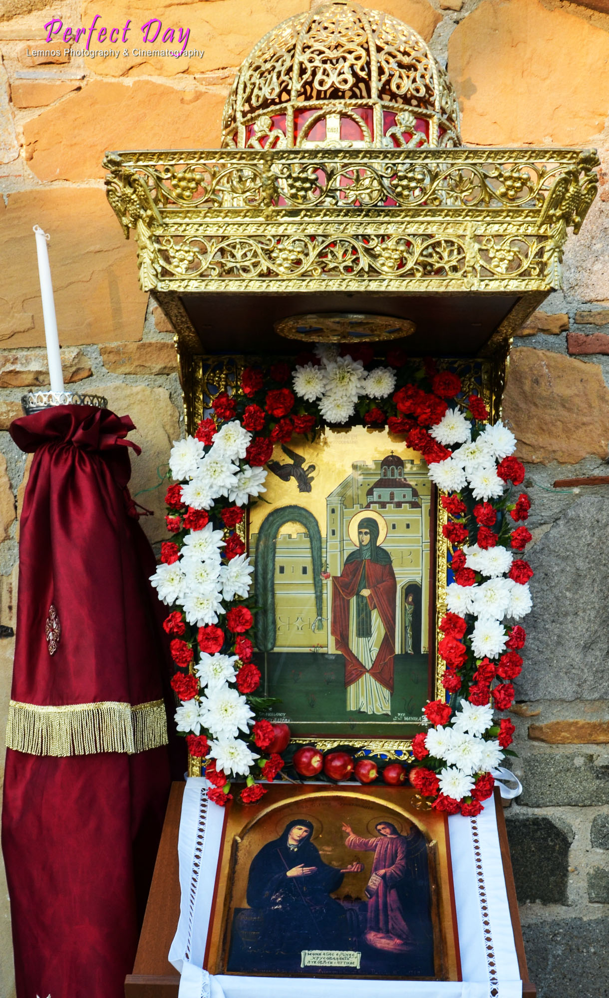 Πλήθος πιστών κατέκλυσε τον μικρό ναό απ' όλη τη Λήμνο για να παρακολουθήσει με κατάνυξη και ταπεινότητα τα ιερά λόγια δοξολογίας προς την Αγία. Ιερείς και ψάλτες ενωμένοι μαζί με το λαό ύψωσαν στα ουράνια προσευχή για καλή υγεία και μακροημέρευση .