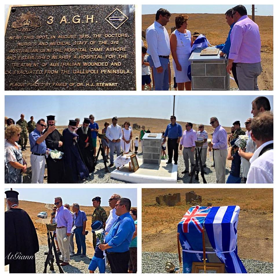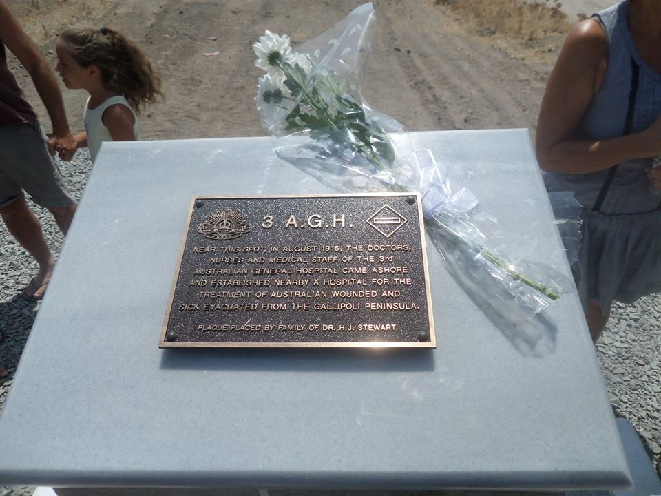 Στην πλάκα αναγράφεται στα αγγλικά: "Κοντά σε αυτό το σημείο, τον Αύγουστο του 1915, οι γιατροί, οι νοσοκόμες και το ιατρικό προσωπικό του 3ου Αυστραλιανού Γενικού Νοσοκομείου κατέφθασαν και εγκατέστησαν κοντά ένα νοσοκομείο για την νοσηλεία των Αυστραλών τραυματιών και ασθενών που περισυνελλέγησαν από τη χερσόνησο της Καλλίπολης.