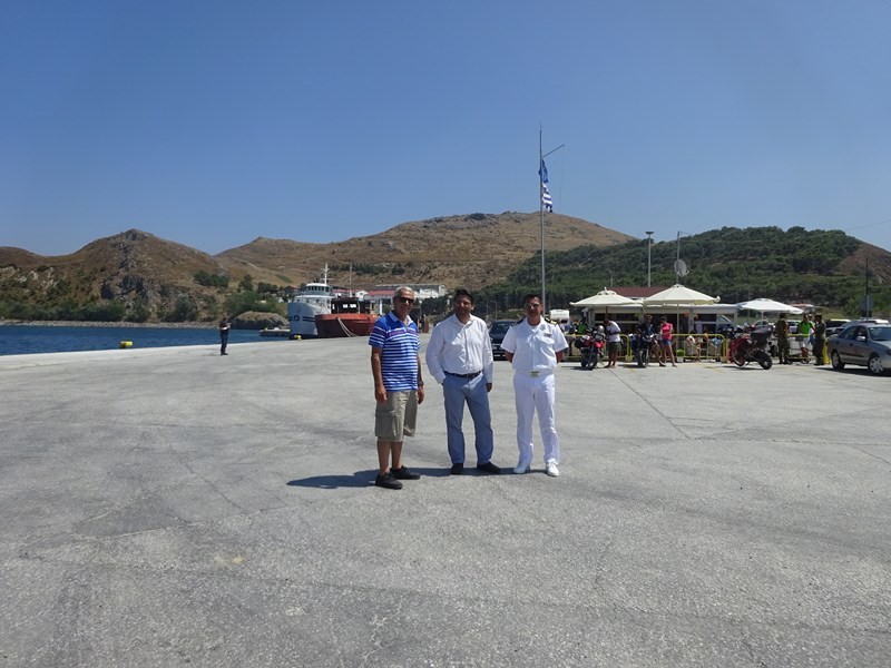 Ο Δήμαρχος Λήμνου κ. Δημήτρης Μαρινάκης, συνοδευόμενος από τον Λιμενάρχη Μύρινας κ. Γιώργο Αρβανίτη και τον Πρόεδρο του Δημοτικού Λιμενικού Ταμείου Λήμνου κ. Χαράλαμπο Δαλαβίτσο, επισκέφθηκε σήμερα Δευτέρα 1 Αυγούστου το ΕΓ/ΟΓ πλοίο «Νήσος Σάμος», το οποίο πραγματοποίησε το πρώτο του ταξίδι προς το νησί μας, συνδέοντάς το με τη Θεσσαλονίκη, τη Μυτιλήνη, τα Μεστά της Χίου και τον Πειραιά.