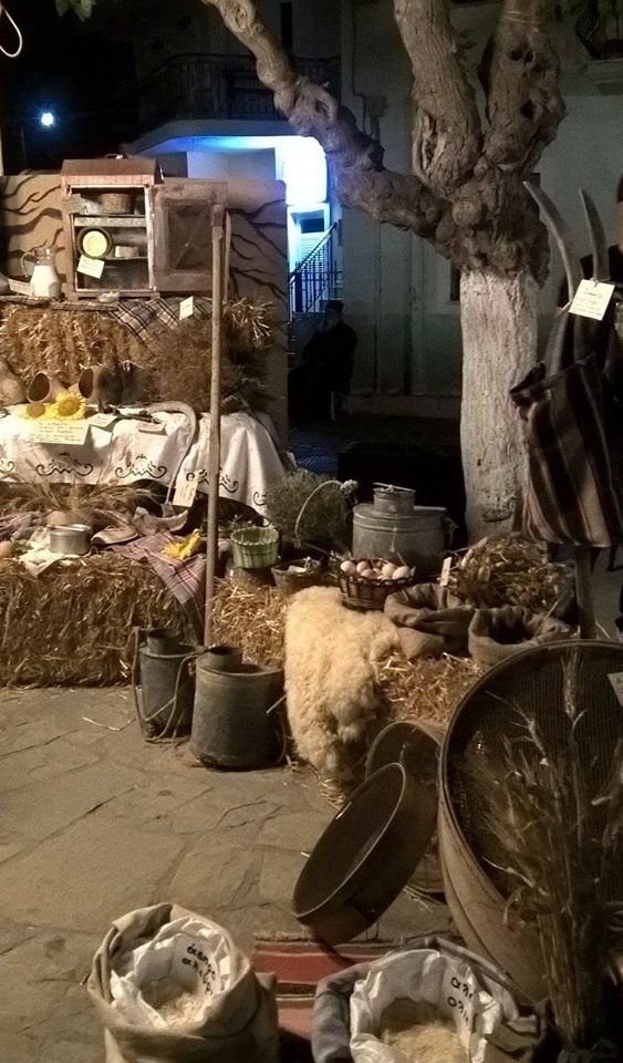 Παράλληλα, στο χώρο πραγματοποιήθηκε έκθεση παλαιώναντικειμένων, η οποία μας μετέφερε σε μια άλλη εποχή. Οι παραγωγοί της περιοχής παρόντες, ο καθένας με τα προϊόντα του σε όμορφα στολισμένους πάγκους, ενώ ένας τεράστιος κυκλικός μπουφές γύρω από το σιντριβάνι τις πλατείας προσέφερε πλούσια κεράσματα, μεταξύ των οποίων και οι παραδοσιακές βαλάνες που ετοίμασαν γυναίκες του χωριού.