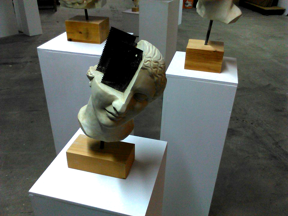 Κλασικά αγάλματα φτιαγμένα με τον έντονο ιστορικό τρόπο ωστόσο κομμένα με την σύγχρονη σκληρή τομή. Μια σειρά προτομών που δημιουργήθηκαν από γύψο και κομμάτια σιδήρου, πάντρεμα δύο διαφορετικών υλών που η κάθε μια μας δίνει μια εντελώς ξεχωριστή θωριά.