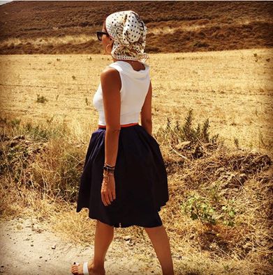 Μάλιστα, επέλεξε και τοπίο του νησιού, στο οποίο φωτογραφήθηκε για τις ανάγκες προωθήσεις των ρούχων «despina vandi collection».