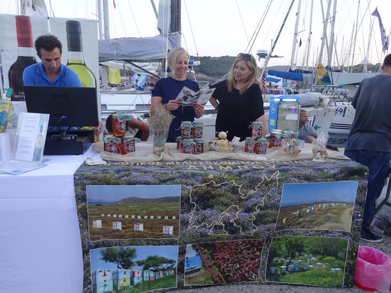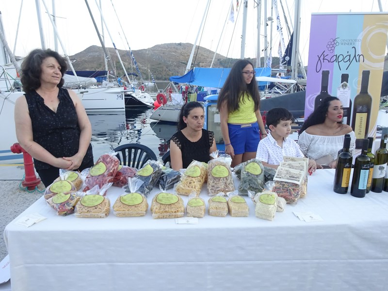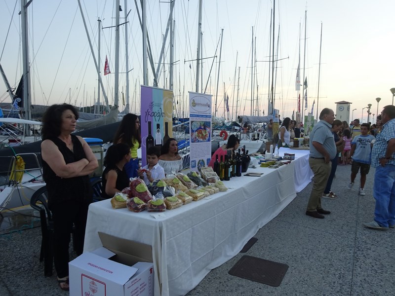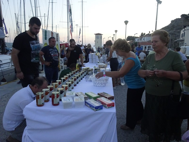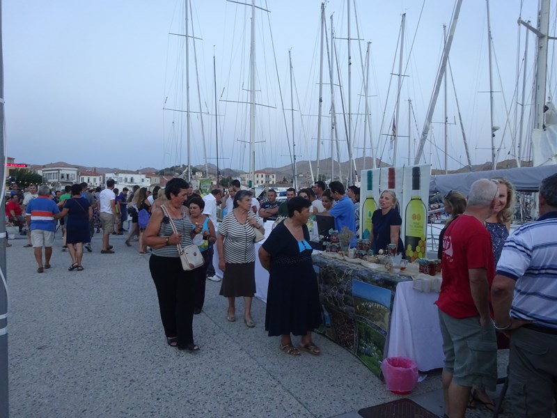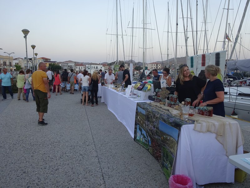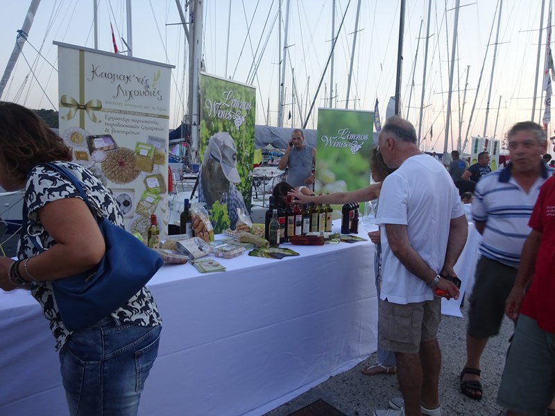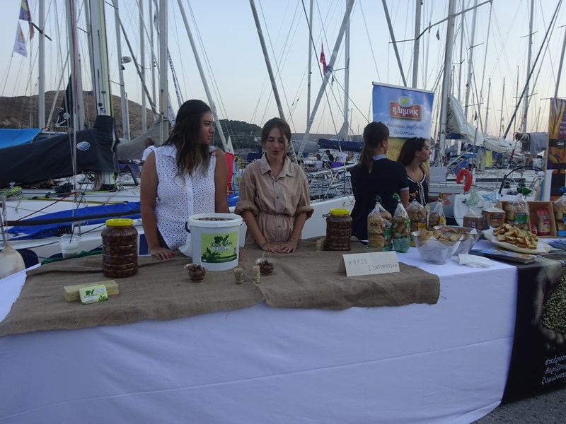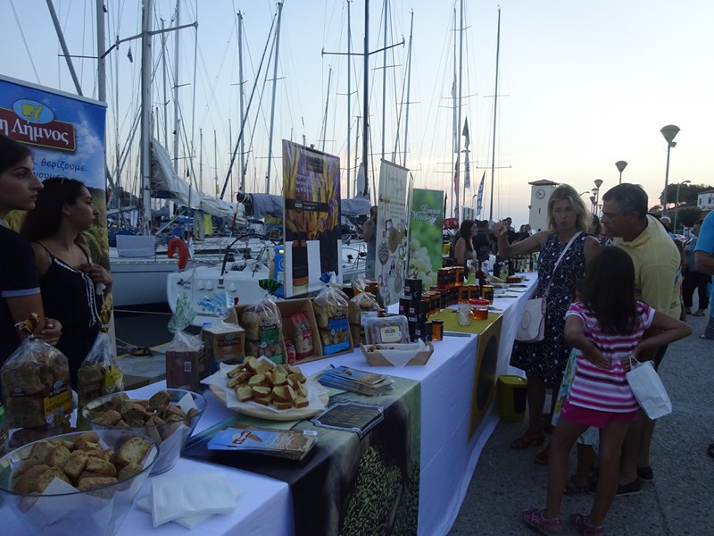 Παράλληλα, από το απόγευμα και καθ΄ όλη τη διάρκεια της βραδιάς, οι επισκέπτες μας είχαν τη δυνατότητα να γνωρίσουν από κοντά, να γευτούν και να απολαύσουν τα τοπικά προϊόντα της Λήμνου στην έκθεση που διοργάνωσε ο Εμπορικός Σύλλογος Λήμνου στη χερσαία ζώνη του παλιού λιμανιού της Μύρινας.