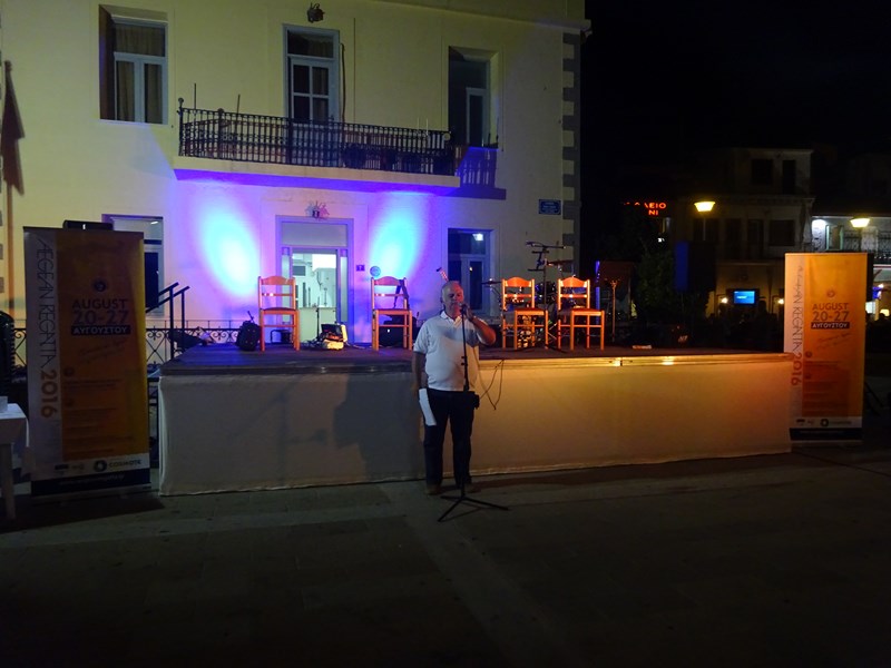 Με μεγάλη επιτυχία πραγματοποιήθηκε χθες, Δευτέρα 22 Αυγούστου, στο παλιό λιμάνι της Μύρινας μπροστά στο Δημαρχείο, η κεντρική εκδήλωση για την υποδοχή του διεθνούς ιστιοπλοϊκού αγώνα Aegean Regatta 2016.