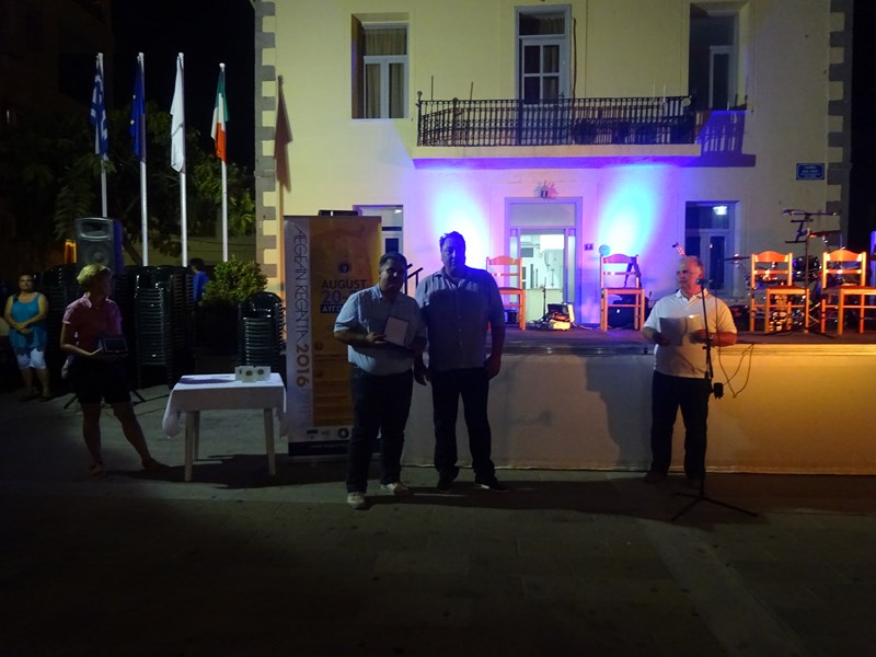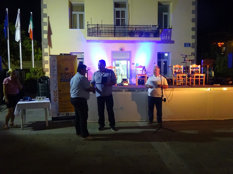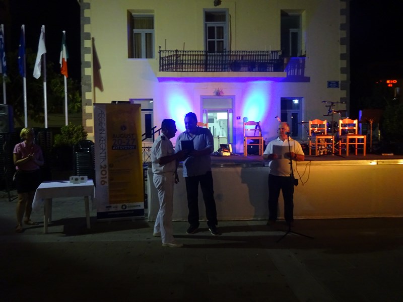 Ο Γενικός Διευθυντής της Γενικής Γραμματείας Αιγαίου και Νησιώτικής Πολιτικής Παύλος Μιχαλακέλης, παρέδωσε τιμητικές πλακέτες στο Δήμο Λήμνου και το Λιμεναρχείο του νησιού για τη συμμετοχή και βοήθεια στη διοργάνωση και αμέσως μετά ακολούθησε η βράβευση των πρώτων νικητών.