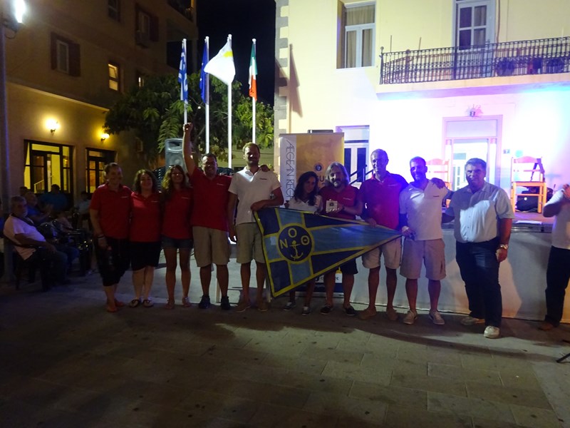 Τις απονομές των επάθλων της 1ης ιστιοδρομίας Πόρτο Καρά – Μύρινα, πραγματοποίησαν, ο Πρόεδρος επιτροπής αγώνων Γιάννης Κλείδωνας, ο Πρόεδρος του ΟΕΠΑ Νίκος Μαρινάκης και ο Αντιδήμαρχος Λήμνου Νίκος Μοσχάκης.