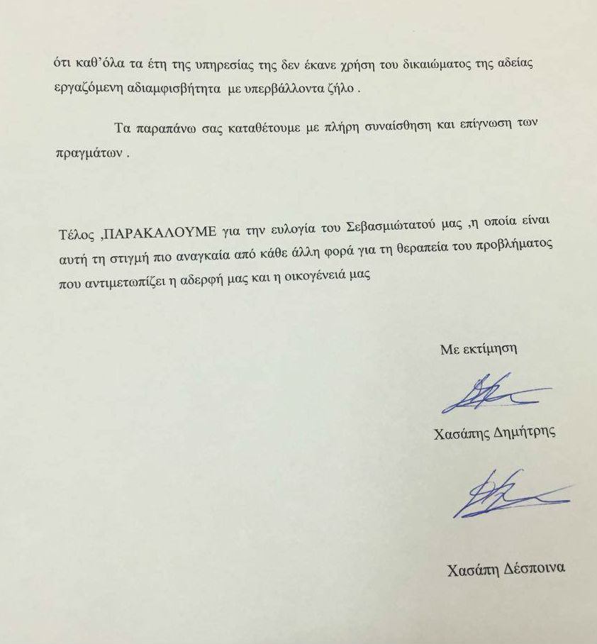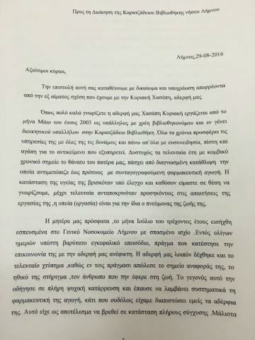 Σας παραθέτουμε την επιστολή που απέστειλαν οι οικείοι της προς την διοίκηση της Καρατζάδειου βιβλιοθήκης