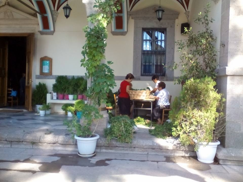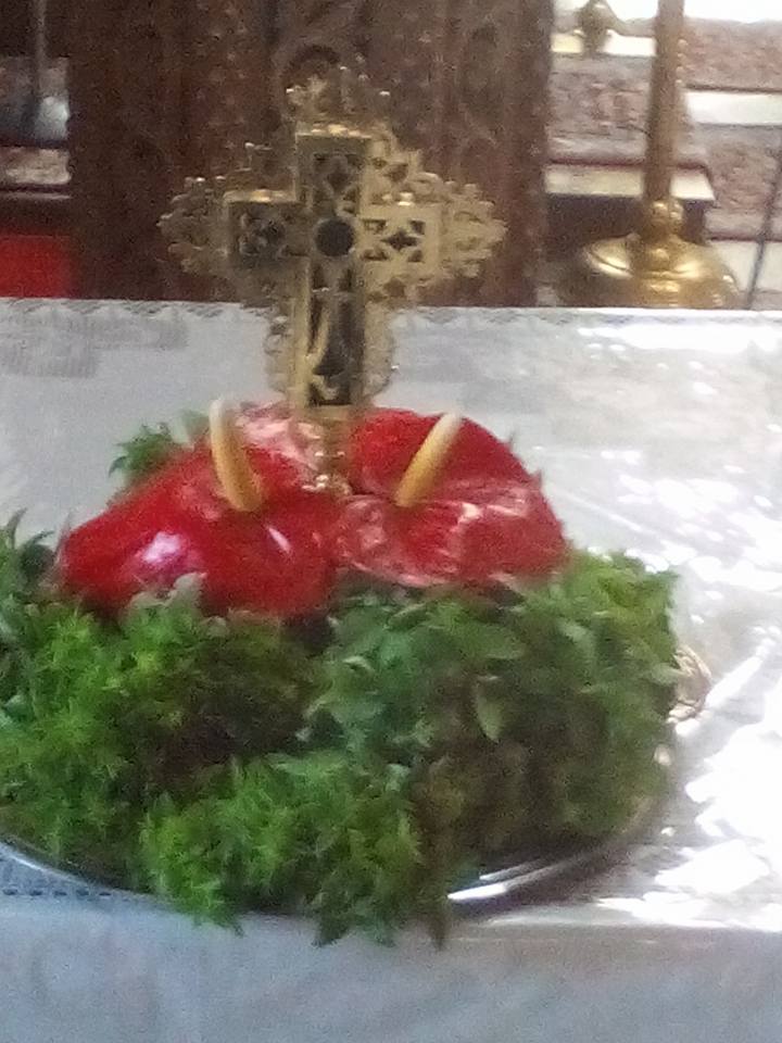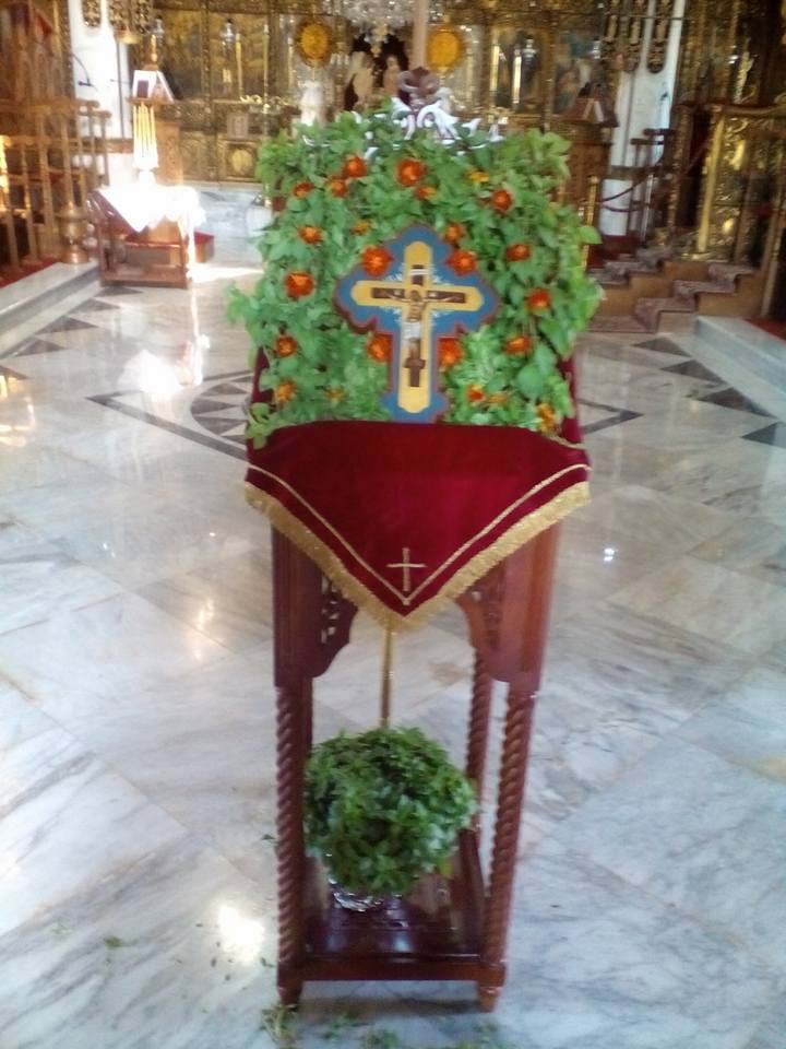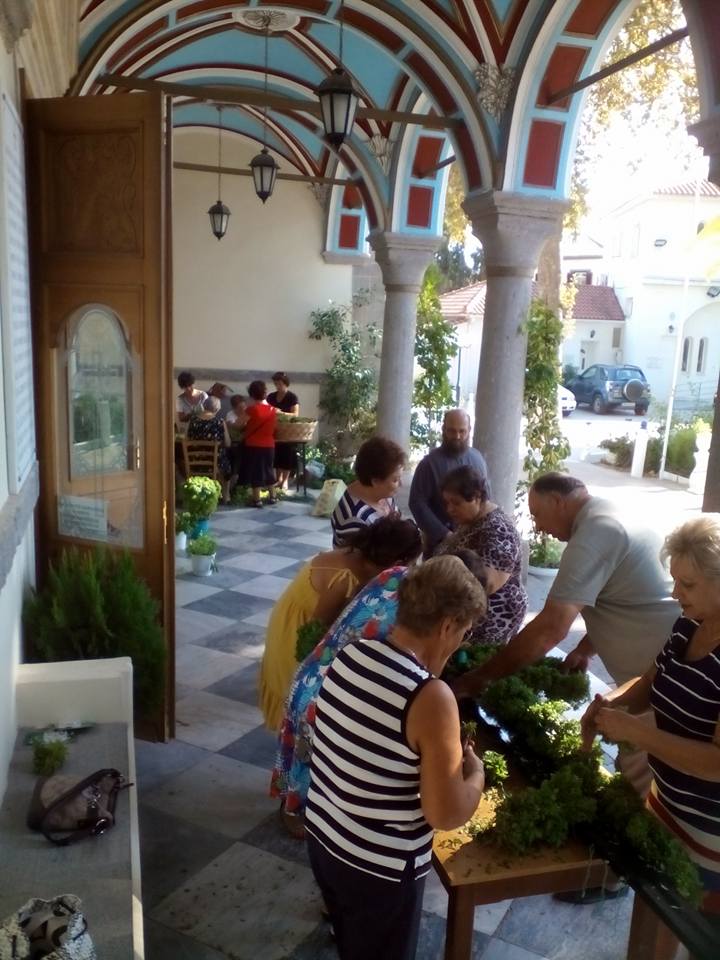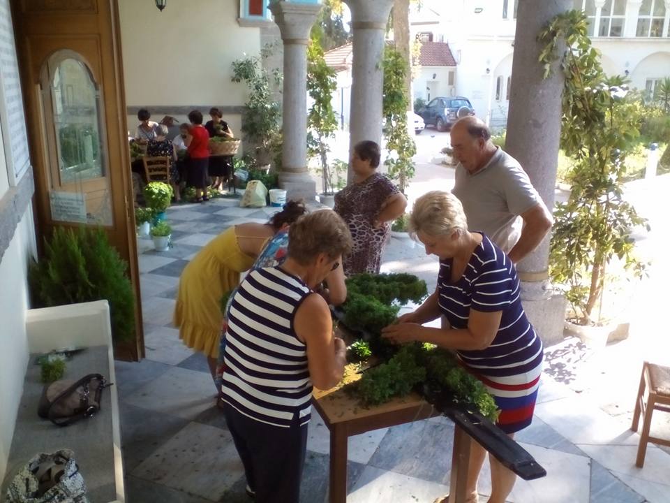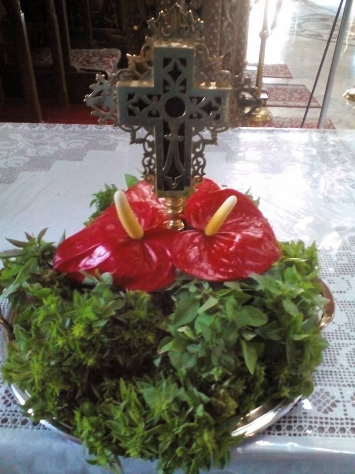 Όπως βλέπετε και στις φωτογραφίες που ακολουθούν, οι προετοιμασίες για τη μεγάλη εορτή ξεκίνησαν από νωρίς, με τις γυναίκες να στολίζουν τον Τίμιο Σταυρό με βασιλικό, ετοιμάζοντας, επιπλέον, ματσάκια βασιλικού που θα διανεμηθούν με το αντίδωρο στην αυριανή Θεία Λειτουργία.