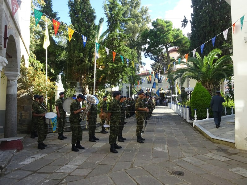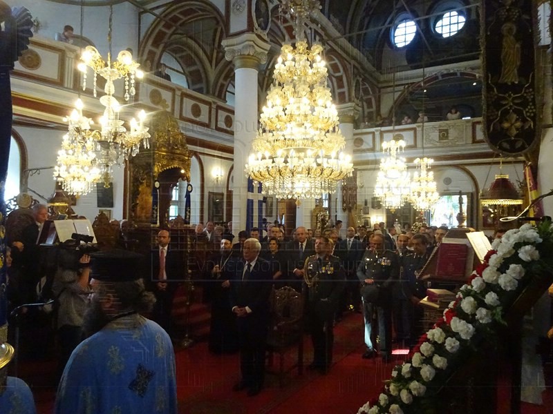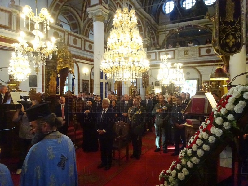 Οι εκδηλώσεις ξεκίνησαν στις 10:30 το πρωί με επίσημη δοξολογία στον Μητροπολιτικό Ναό της Αγίας Τριάδας, παρόντος του Προέδρου της Δημοκρατίας, στην οποία χοροστάτησε ο Σεβασμιότατος Μητροπολίτης Λήμνου και Αγίου Ευστρατίου κ.κ. Ιερόθεος, συμπαραστατούμενος από τον Ιερό κλήρο της πόλης.