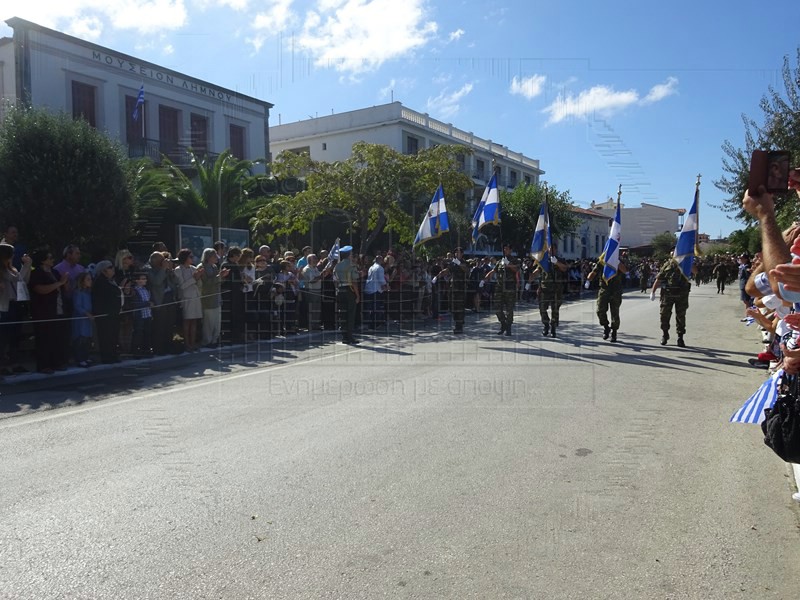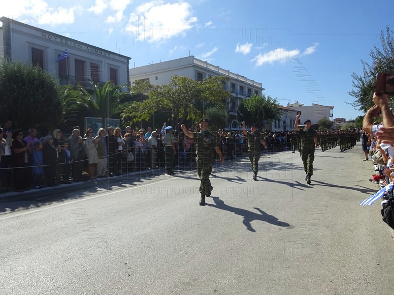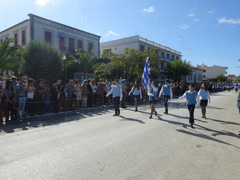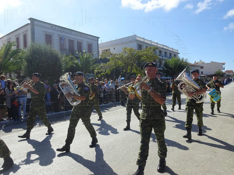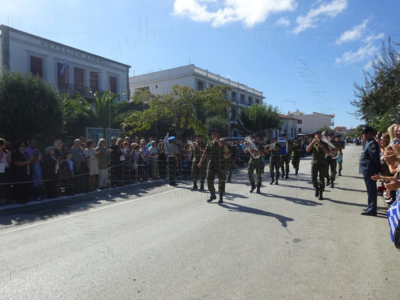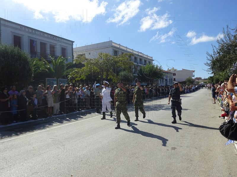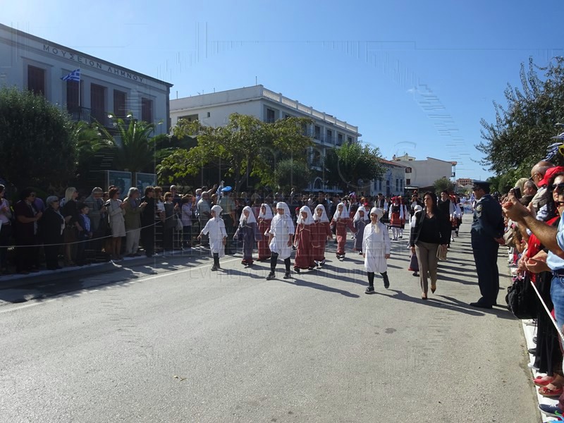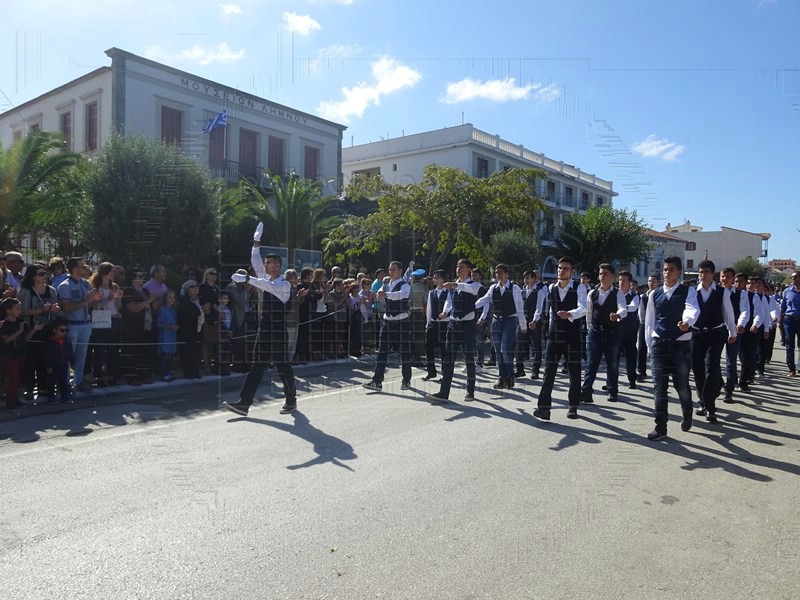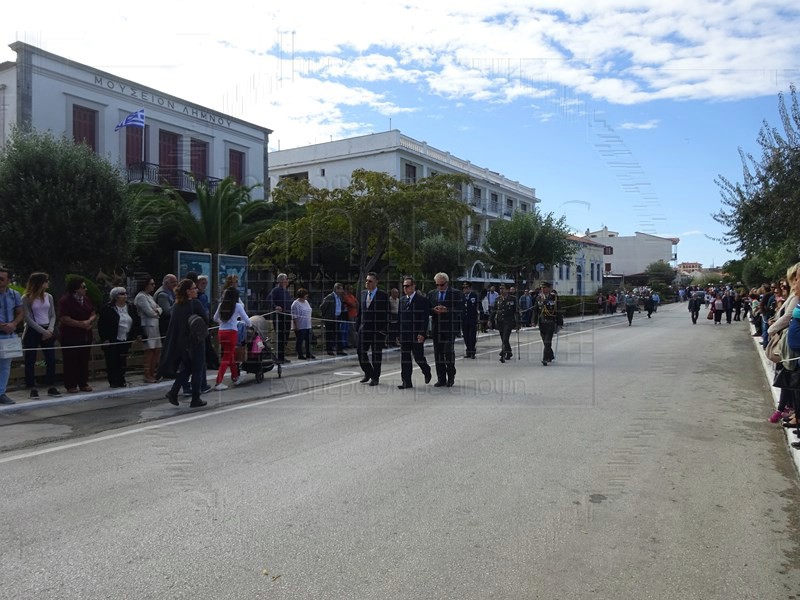 Στη συνέχεια, ακολούθησε επιμνημόσυνη δέηση στο χώρο του Ηρώου Πεσόντων και κατάθεση στεφάνου από τον Πρόεδρο της Δημοκρατίας, ενώ αμέσως μετά πραγματοποιήθηκε η παρέλαση του Περιφερειακού Τμήματος Λήμνου του Ελληνικού Ερυθρού Σταυρού, του Λυκείου Ελληνίδων – Παράρτημα Λήμνου, του Σώματος Ελληνικού Οδηγισμού, των Σχολείων Πρωτοβάθμιας και Δευτεροβάθμιας Εκπαίδευσης, πολιτιστικών και αθλητικών συλλόγων, καθώς και Τμημάτων των Ενόπλων Δυνάμεων με συμμετοχή της Φιλαρμονικής του Δήμου Λήμνου και του Στρατού.