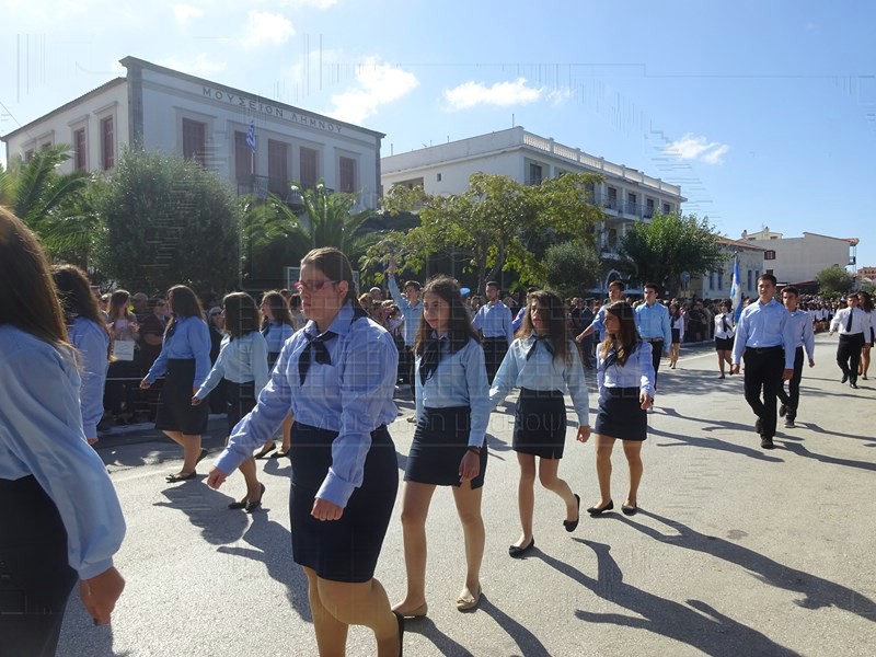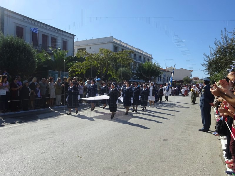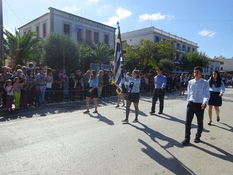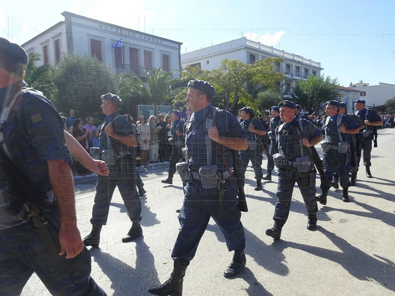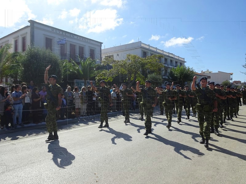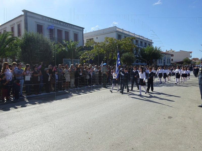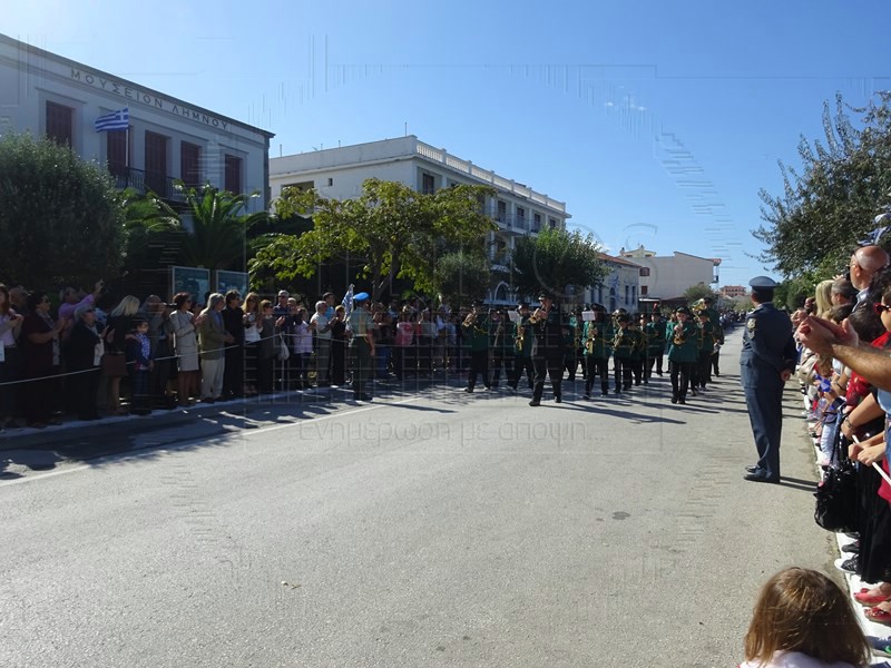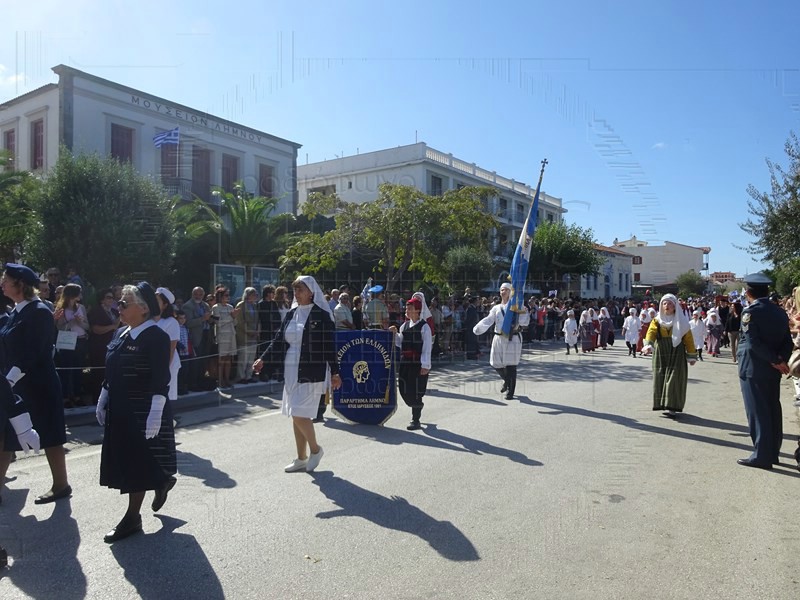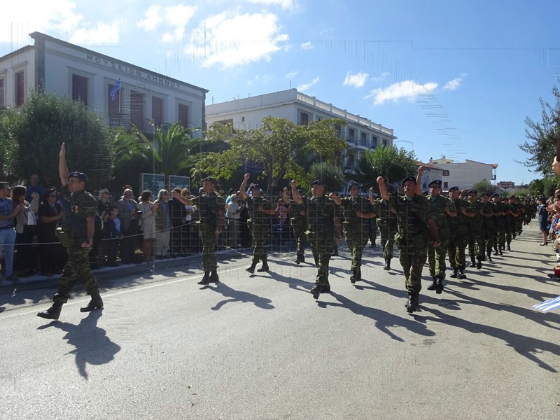 Στη συνέχεια, ακολούθησε επιμνημόσυνη δέηση στο χώρο του Ηρώου Πεσόντων και κατάθεση στεφάνου από τον Πρόεδρο της Δημοκρατίας, ενώ αμέσως μετά πραγματοποιήθηκε η παρέλαση του Περιφερειακού Τμήματος Λήμνου του Ελληνικού Ερυθρού Σταυρού, του Λυκείου Ελληνίδων – Παράρτημα Λήμνου, του Σώματος Ελληνικού Οδηγισμού, των Σχολείων Πρωτοβάθμιας και Δευτεροβάθμιας Εκπαίδευσης, πολιτιστικών και αθλητικών συλλόγων, καθώς και Τμημάτων των Ενόπλων Δυνάμεων με συμμετοχή της Φιλαρμονικής του Δήμου Λήμνου και του Στρατού.