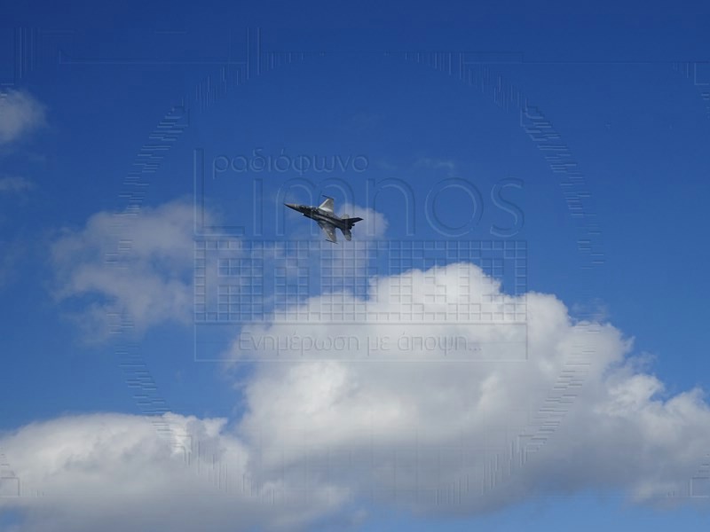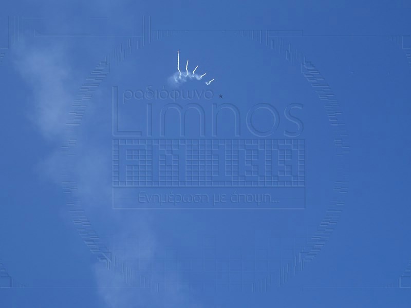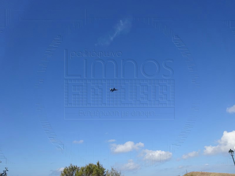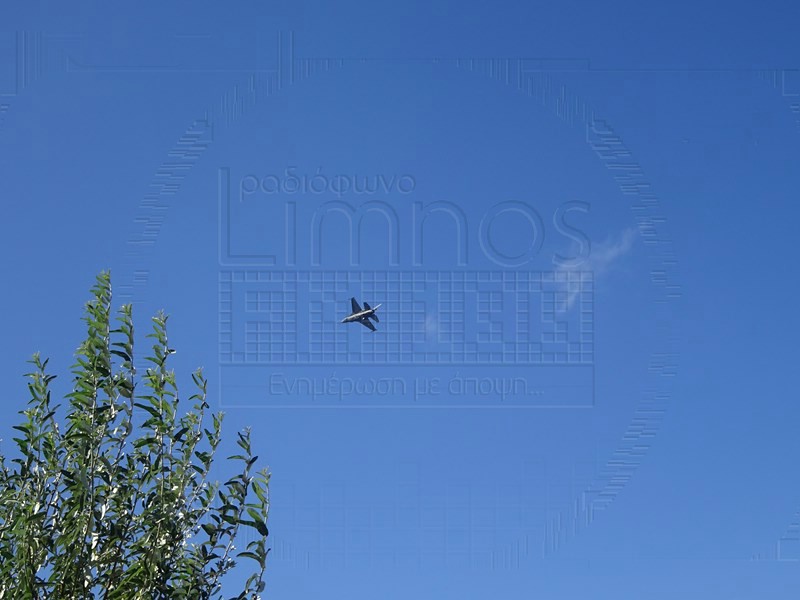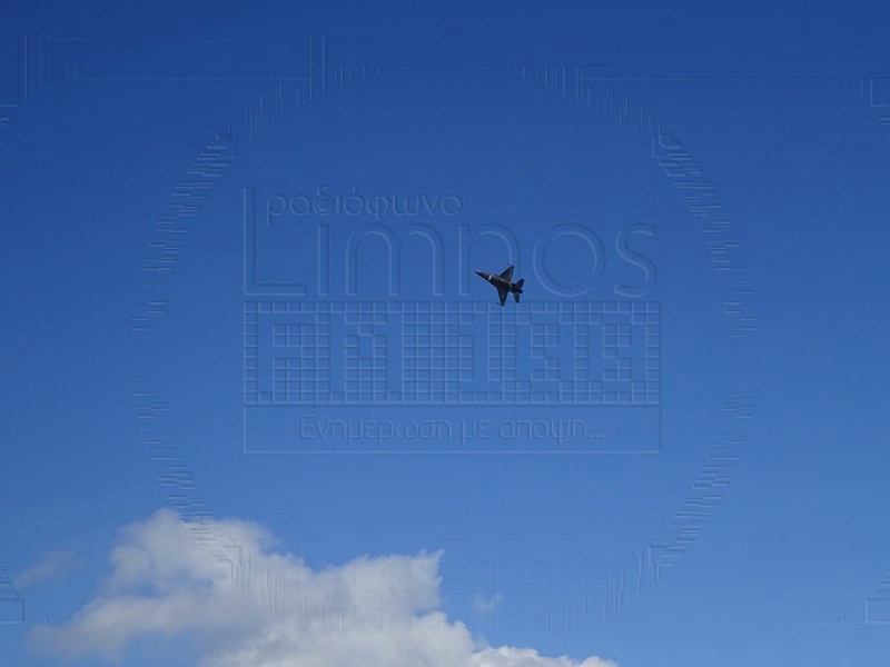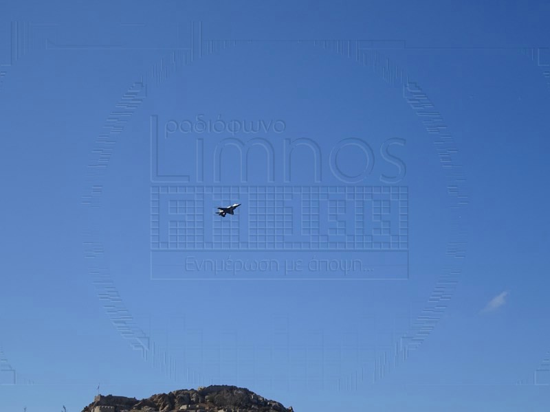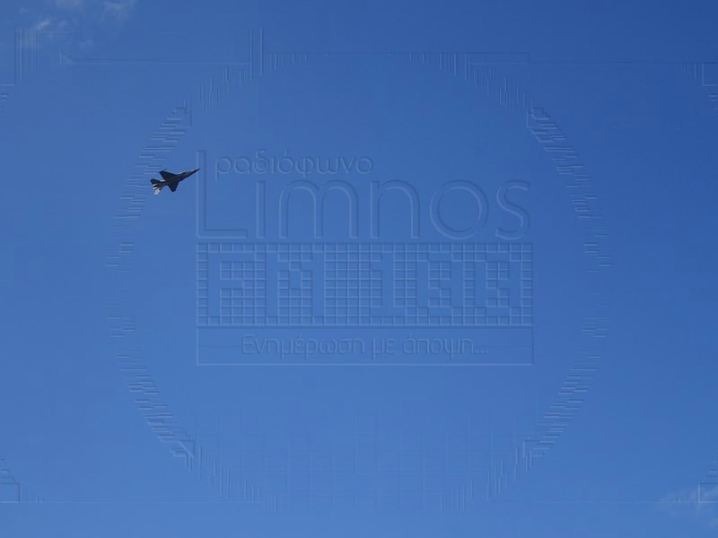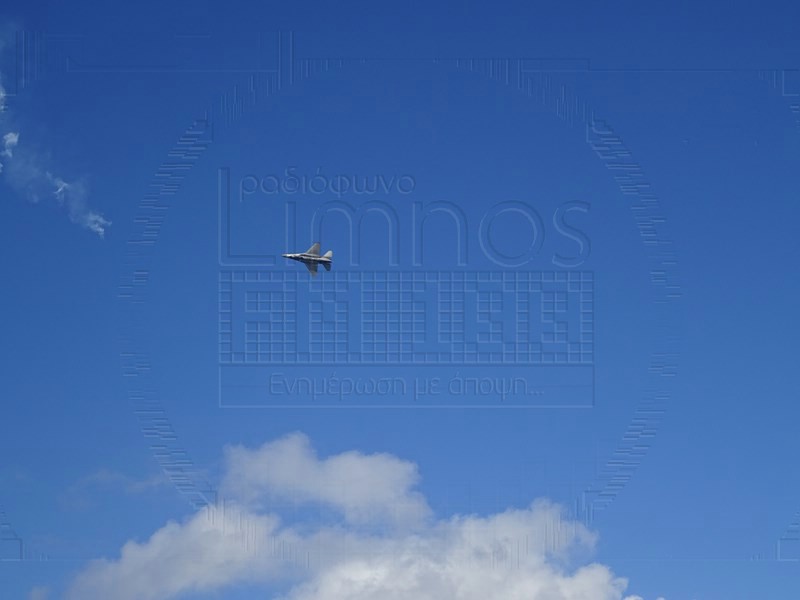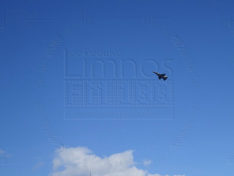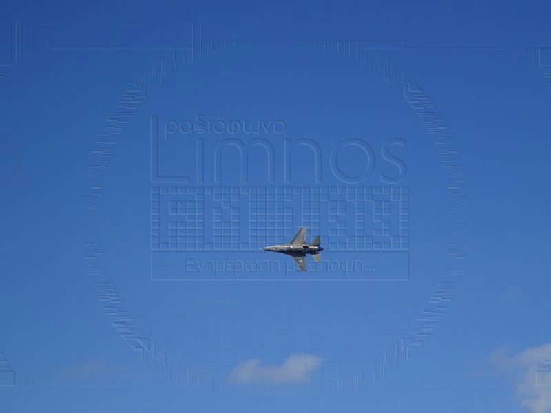 Μετά το πέρας της παρέλασης, ο λημνιακής καταγωγής Σμηναγός (Ι) Λουκάς Θεοχαρόπουλος, συγκίνησε και καθήλωσε το κοινό, πραγματοποιώντας τη μοναδικής ικανότητας αεροπορική επίδειξη με το αεροσκάφος της Ομάδας Αεροπορικών Επιδείξεων Μεμονωμένου Αεροσκάφους F-16 «Ζευς» της Πολεμικής Αεροπορίας.