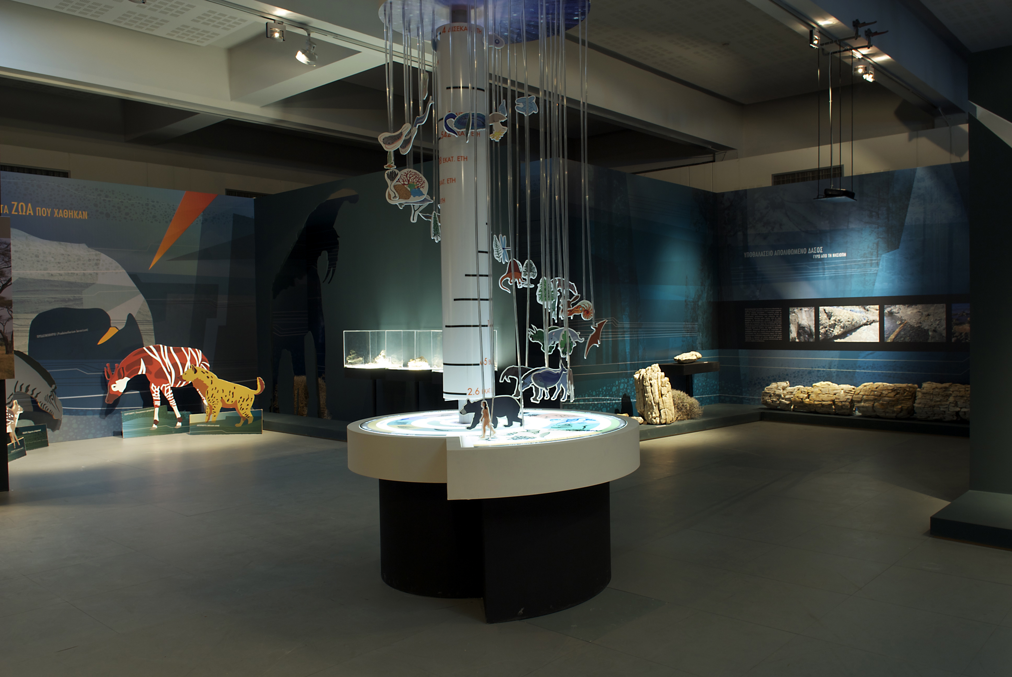 • «Γαία: Από τον μύθο στην επιστήμη». Στην τρίτη ενότητα παρουσιάζεται η εντυπωσιακή εξέλιξη της βιοποικιλότητας, των οικοσυστημάτων, της χλωρίδας και της πανίδας της περιοχής του Αιγαίου κατά τη διάρκεια 150 εκατομμυρίων ετών. Πλήθος φυτικών και ζωικών απολιθωμάτων, εκθέματα του Απολιθωμένου Δάσους Λέσβου, μορφές σύγχρονων δέντρων με τις αντίστοιχες απολιθωμένες προγονικές μορφές τους και ανάμεσά τους αναπαραστάσεις ζώων, δημιουργούν ένα εντυπωσιακό σκηνικό ανέγγιχτο από το χρόνο.