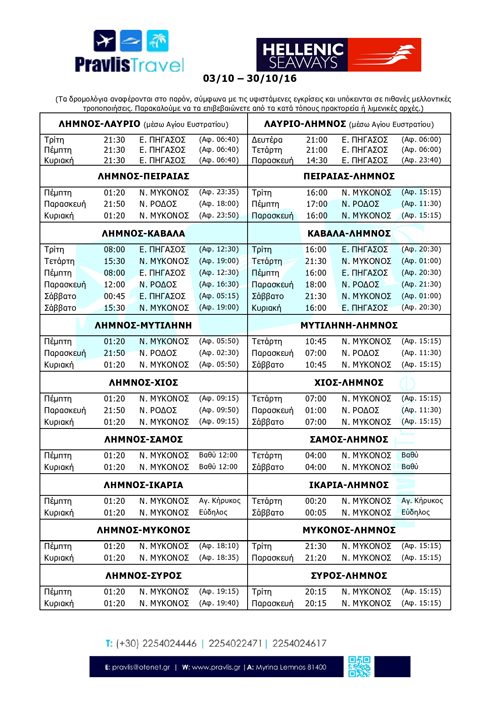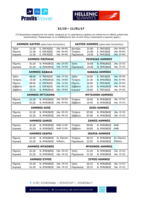 Δείτε τους πίνακες δρομολογίων όπως αυτοί ανακοινώθηκαν από το ταξιδιωτικό πρακτορείο "Pravlis Travel".