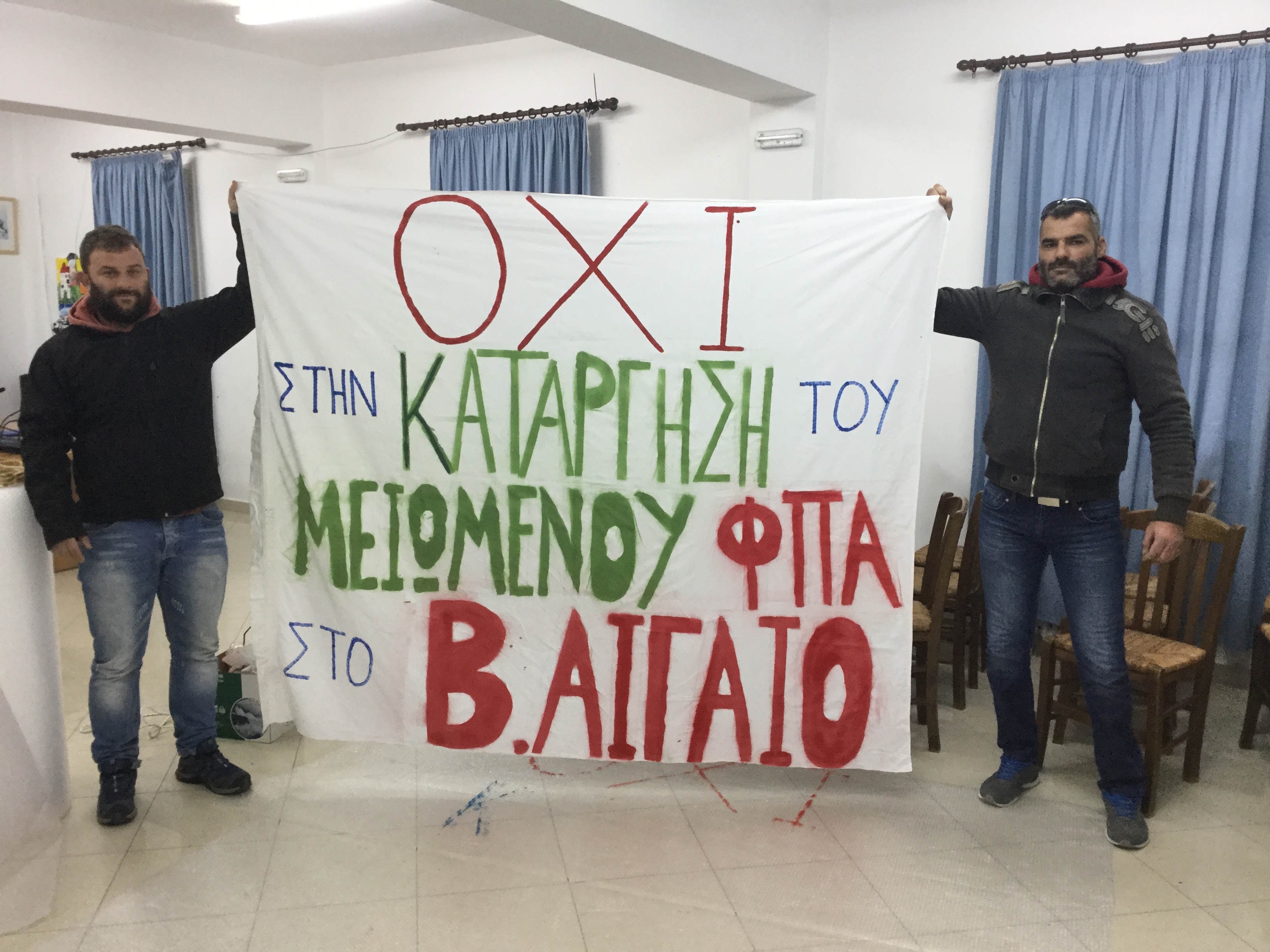 Οι κάτοικοι του νησιού παρά τις αντίξοες καιρικές συνθήκες ανταποκρίθηκαν στο κάλεσμά μας. Ελπίζουμε όλα αυτά έστω την ύστατη στιγμή να έχουν σαν αποτέλεσμα την κατάθεση τροπολογίας στη Βουλή, με την οποία θα διατηρείται ο μειωμένος συντελεστής Φ.Π.Α στα νησιά μας».
