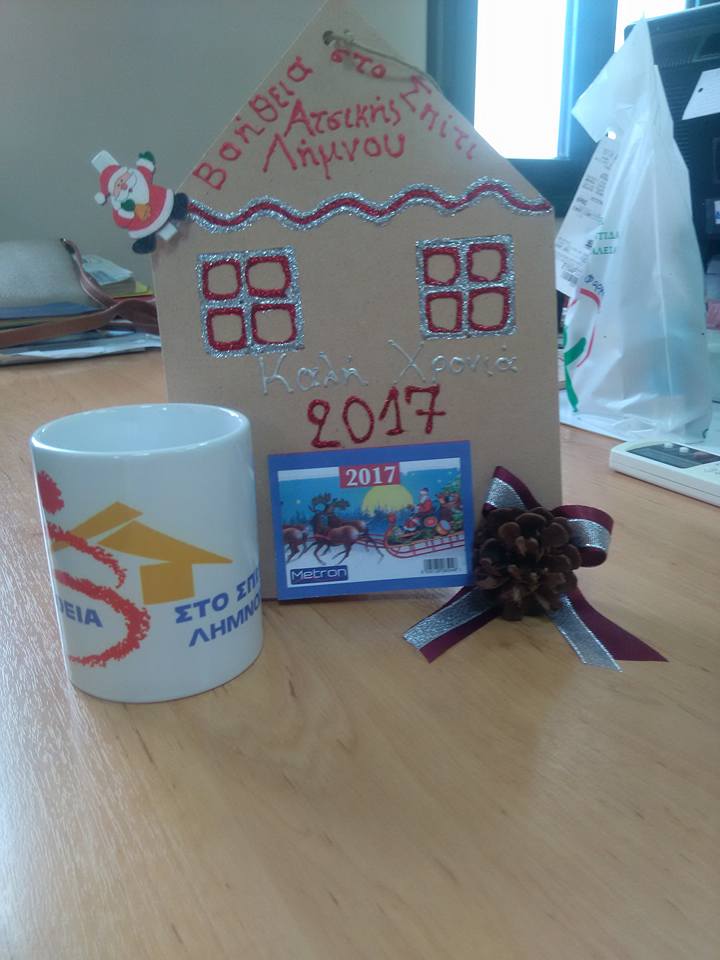 Ευχαριστούμε την πρόεδρο του ΟΚΠΑ Δήμου Λήμνου κα Τουφου Μαγδαληνή για τη συμπαράσταση κ τη θετική της ανταπόκριση, λόγω του οικονομικού κόστους, στην ιδέα μας να προσφέρουμε αυτά τα δωράκια στους εξυπηρετούμενους. Καθώς επίσης και τη βοήθεια των κοριτσιών στο διοικητικό τμήμα του Οργανισμού!