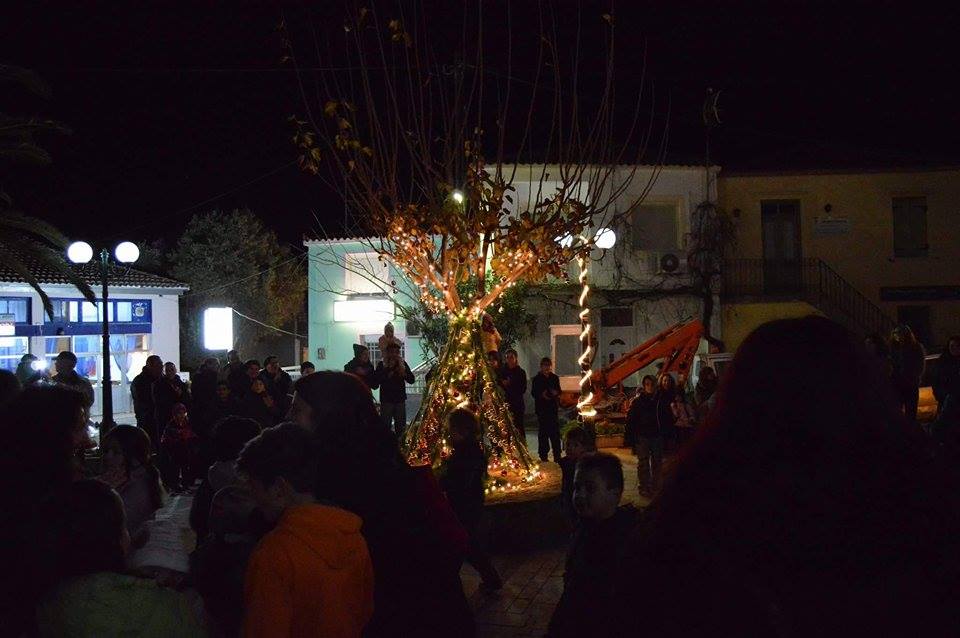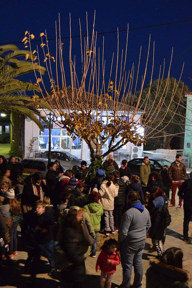 Η παρέα μεταφέρθηκε στην πλατεία του χωριού. Εκεί τα παιδιά στόλισαν το δέντρο, πήραν δώρα και καραμέλες από τον Αι-Βασίλη και άκουσαν τραγούδια από τη Φιλαρμονική του Δήμου Λήμνου.