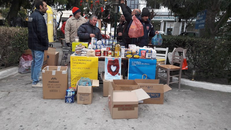 Στον πάγκο που έχει στηθεί στην Υψιπύλης (ΟΤΕ) συγκεντρώνονται τρόφιμα μακράς διαρκείας, τα οποία θα μοιραστούν σε συνανθρώπους μας που τα έχουν ανάγκη μέσω τον ποδοσφαιρικών σωματείων του νησιού μας, αλλά και φάρμακα για το Κοινωνικό Φαρμακείο του Νοσοκομείου.