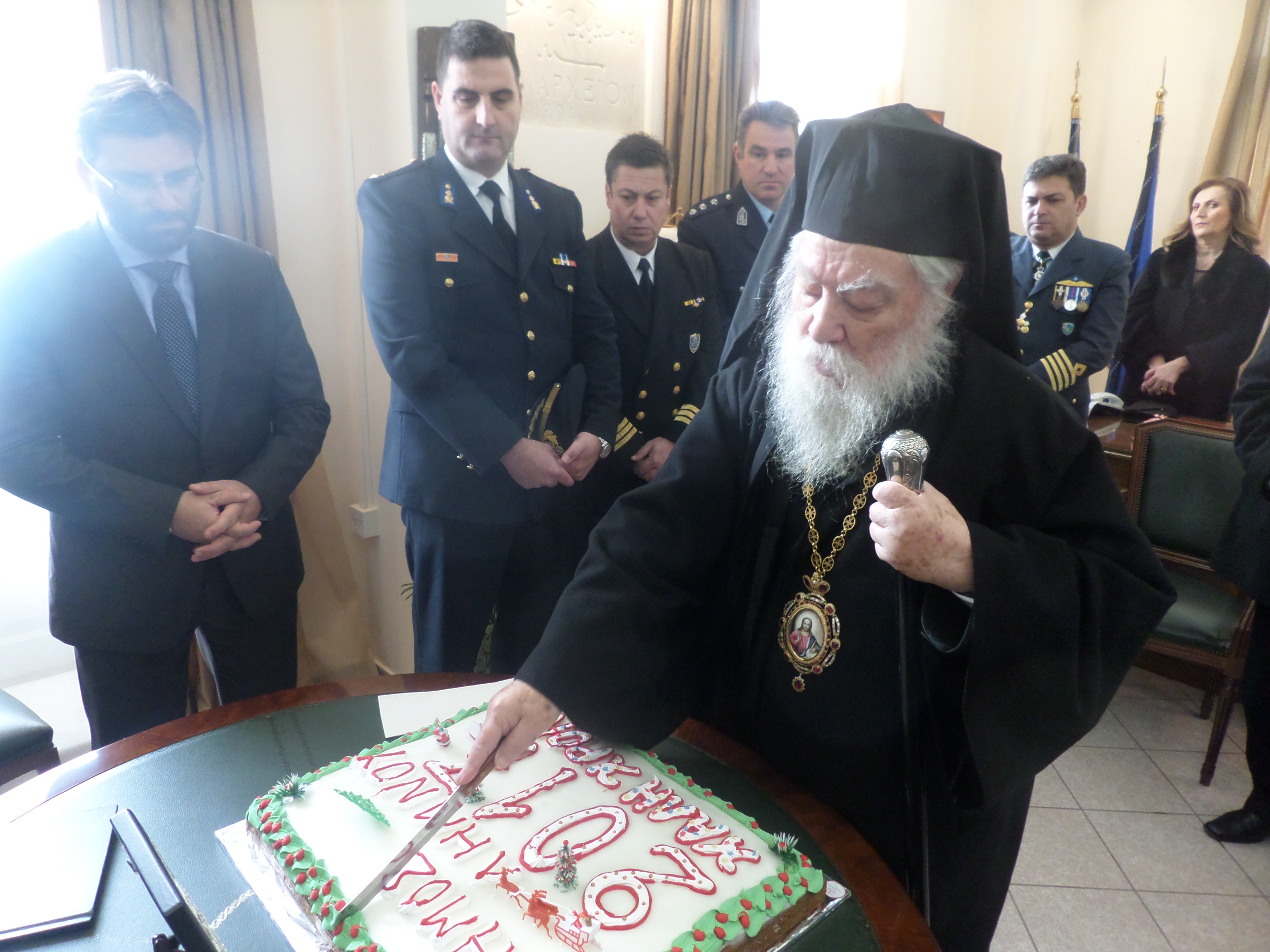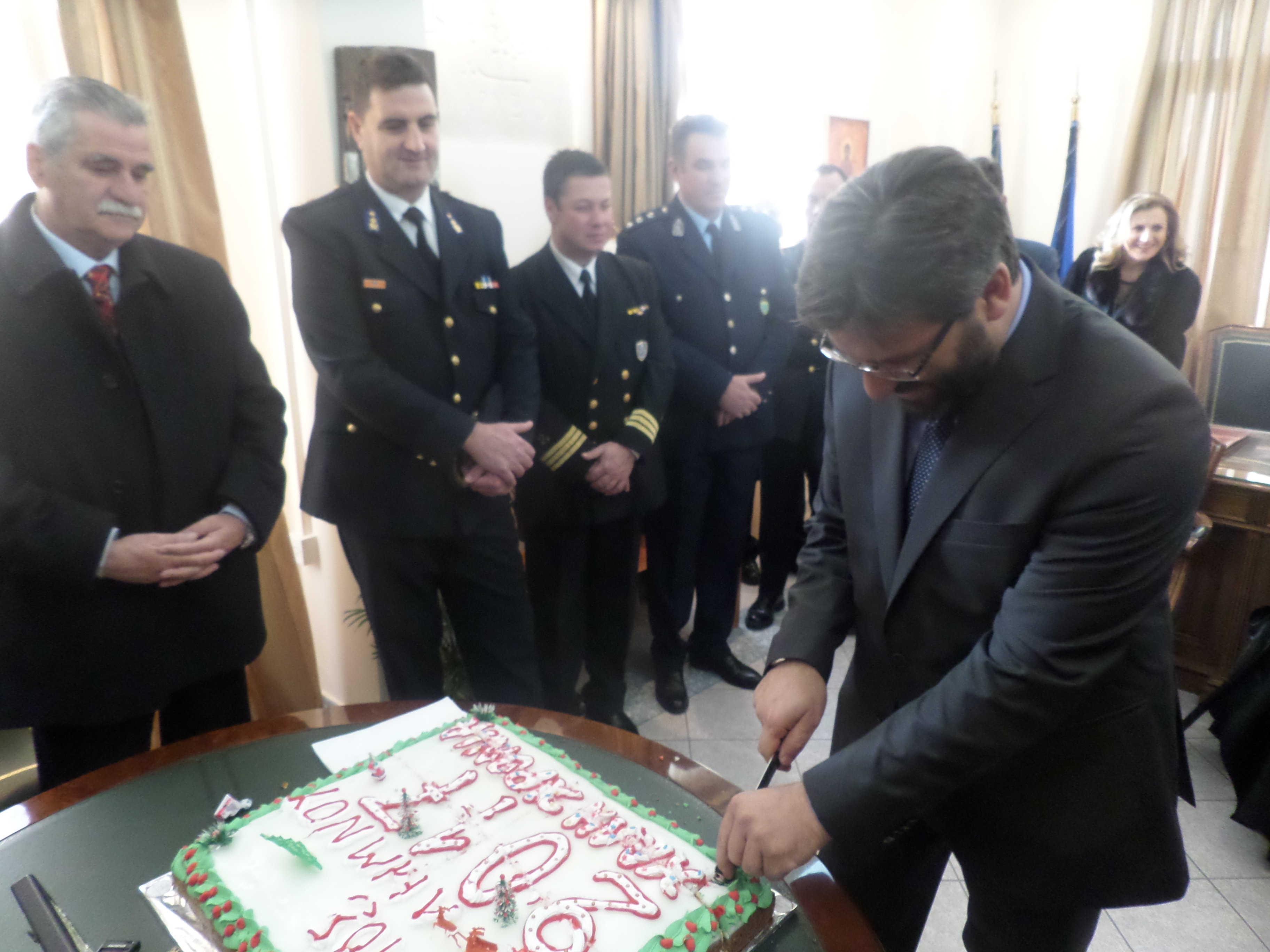 Ο Δήμαρχος ευχήθηκε καλή χρονιά σε όλο τον κόσμο, προκοπή και πρόοδο στους νέους και τα παιδιά. Επίσης, ευχήθηκε καλή δύναμη στους δημοτικούς συμβούλους και τους εργαζόμενους στο Δήμο.