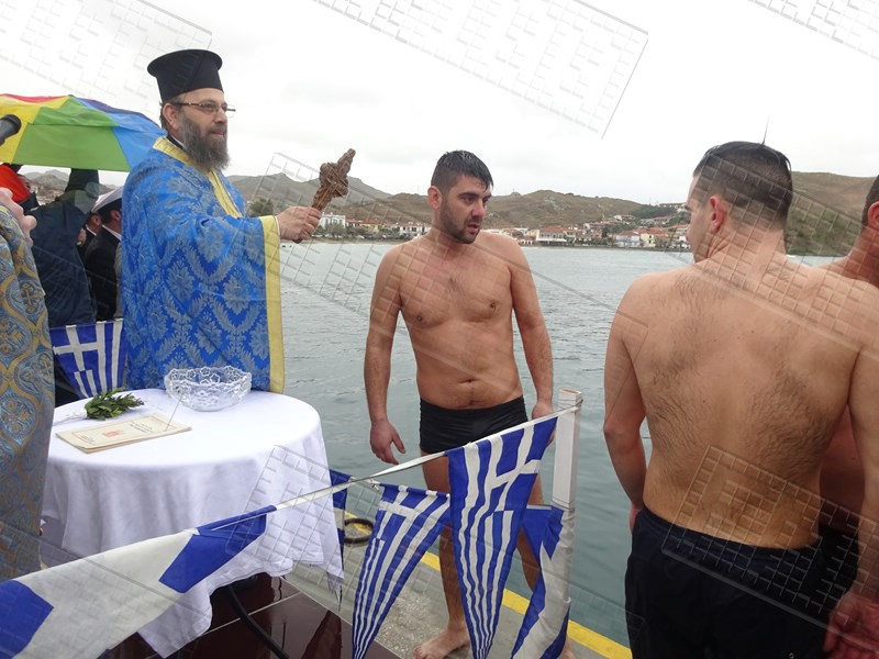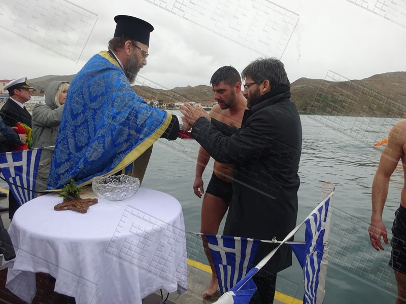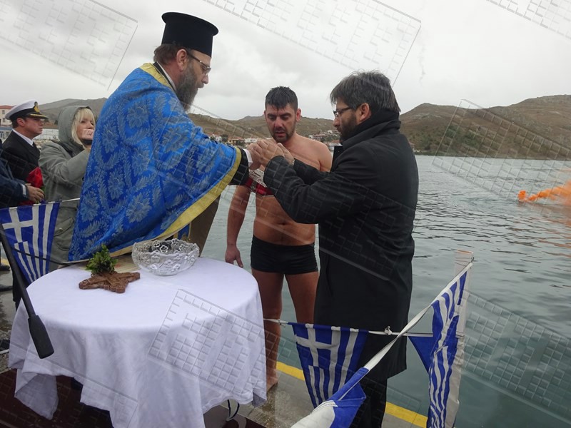 Στη Μύρινα, μετά την τέλεση της Θείας Λειτουργίας και την Ακολουθία του Μεγάλου Αγιασμού στον Μητροπολιτικό Ναό της Αγίας Τριάδας, ακολούθησε η τελετή κατάδυσης του Τιμίου Σταυρού στο παλιό λιμάνι, παρουσία του Επάρχου Λήμνου Βαγγέλη Γιαρμαδούρου, του Δημάρχου Λήμνου Δημήτρη Μαρινάκη, του Αντιδημάρχου Νίκου Μοσχάκη αλλά και του Βουλευτή της Νέας Δημοκρατίας στο Νομό Λέσβου Χαράλαμπου Αθανασίου, ο οποίος από εχθές πραγματοποιεί επίσκεψη στο νησί.