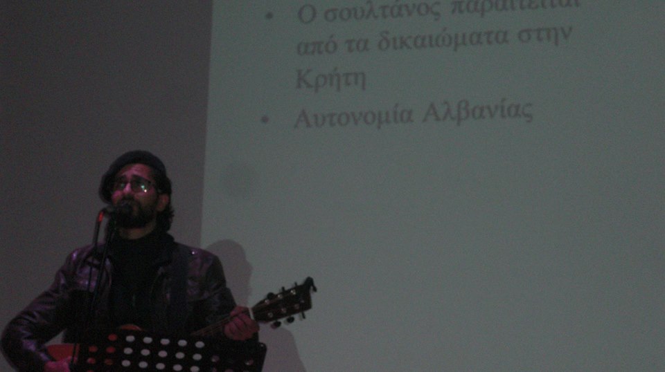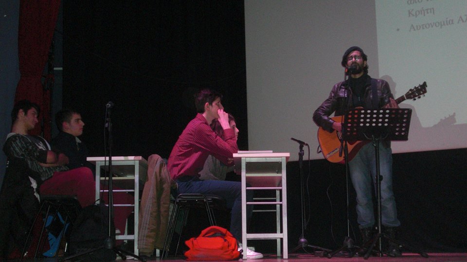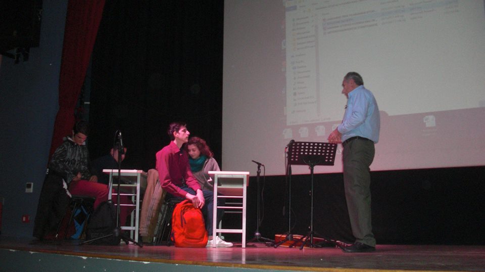 Το μάθημα εμπλουτιζόταν με ενδιαφέρουσες διαφάνειες και χάρτες και στη ροή των γεγονότων η ομάδα των αφηγητών (Γιώργος Καριακλής, Δέσποινα Καμπουροπούλου και Μαρίνα Μουτσάνα), διάβαζαν ενδιαφέροντα αποσπάσματα από λογοτεχνικά κείμενα, που είχαν σχέση με τα θέματα. Η όλη παράσταση εμπλουτίστηκε ηχητικά με την πετυχημένη παρεμβολή της μουσικής του Κώστα Ζαφειρίου, που παρουσίασε τραγούδια σχετικά με τις ιστορικές φάσεις που παρουσιάστηκαν.