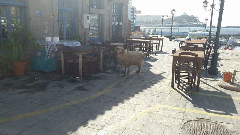Όπως θα δείτε στις φωτογραφίες που ακολουθούν, ο τράγος περπάτησε στην περιοχή του παλιού λιμανιού κάνοντας τα φλας να ανάψουν…