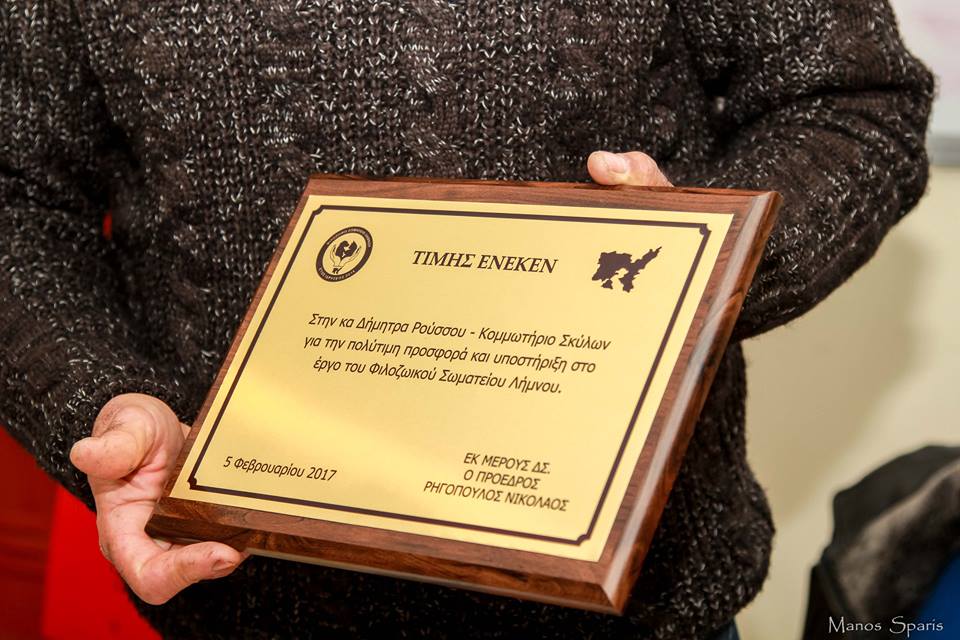 Κατά τη διάρκεια της συνέλευσης βραβεύθηκαν με τιμητική πλακέτα η κα Ρούσσου Δήμητρα «Κομμωτήριο Σκύλων» και ο Πολιτιστικός-Θεατρικός Σύλλογος «οι Αγεφύρωτοι» για την πολύτιμη προσφορά και υποστήριξη στο έργο του σωματείου μας.
