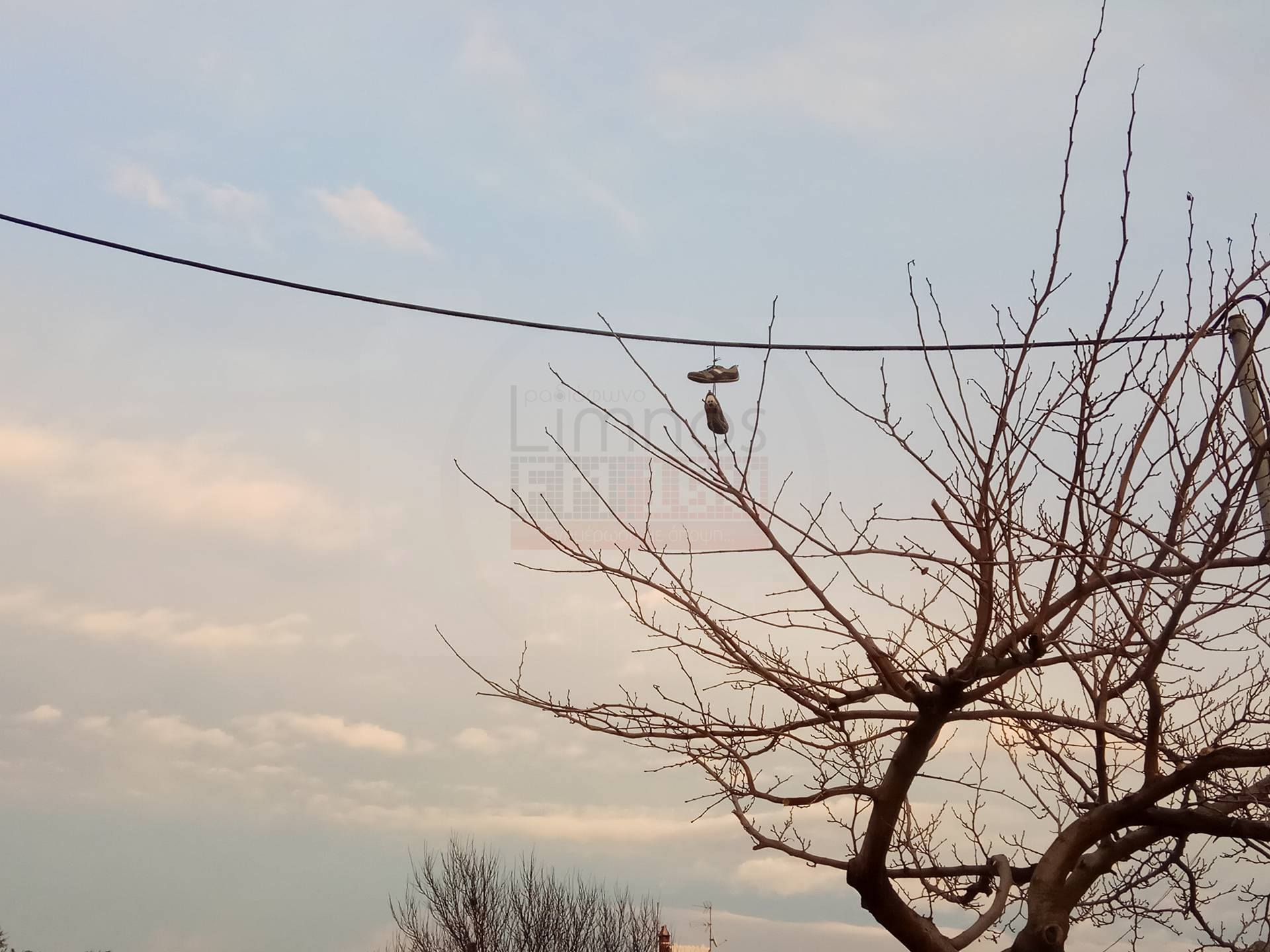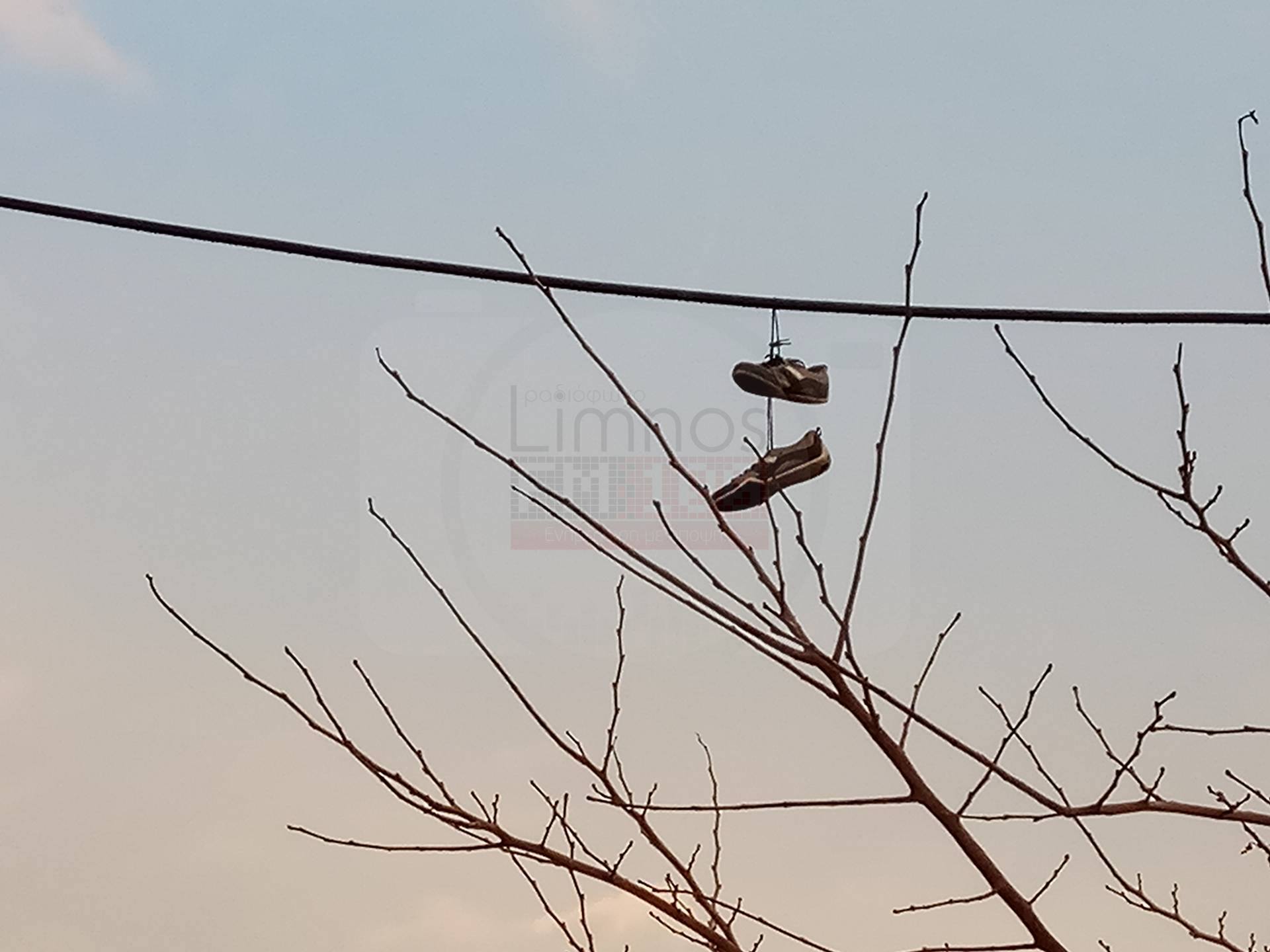 Τις παρακάτω εικόνες απαθανάτισε αναγνώστης μας στο δρόμο κοντά στο ξενοδοχείο «Διαμαντίδης» και μας τις έστειλε με το εξής σχόλιο: «Κάποιος κρέμασε τα παπούτσια… με όλη την σημασία της λέξης!».