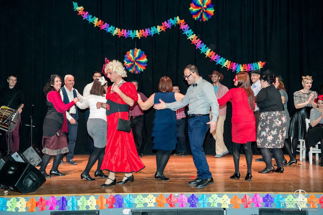 Με πολύ κέφι, μουσικοί, χορευτές και ηθοποιοί μας μετέφεραν στην Αποκριά της Θράκης, της Μακεδονίας, της Στερεάς Ελλάδας, του Αιγαίου και της Κρήτης και μας πρόσφεραν ένα θέαμα διασκεδαστικό, προσαρμοσμένο πλήρως στο πνεύμα της εποχής. Με τα στοιχεία της σάτιρας, της μεταμφίεσης, των συμβολισμών και με τους εξαίρετους μουσικούς Βαγγέλη Δημούδη, Κώστα Φόρτσα και Μανόλη Δημούδη, έφηβοι και ενήλικες χορευτές του Λυκείου των Ελληνίδων Λήμνου ξεσήκωσαν το κοινό.