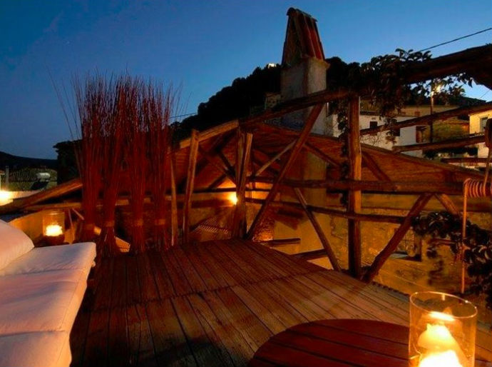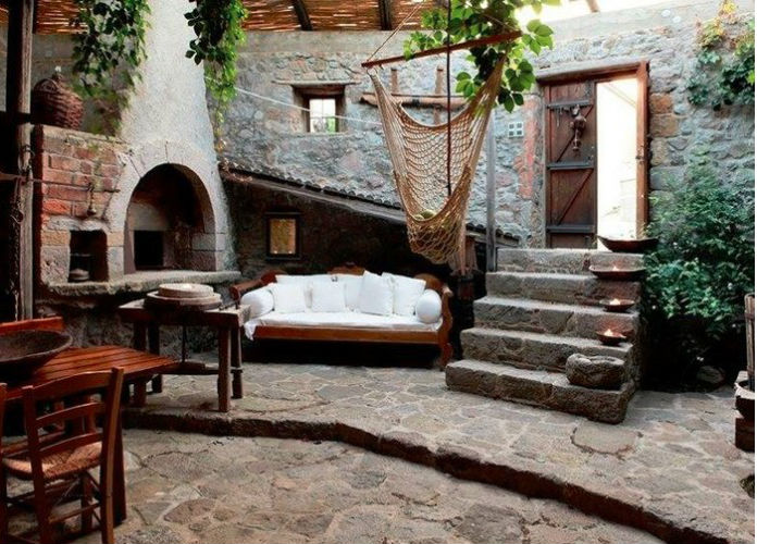 Η κατεστραμμένη στέγη και η έντονη κλίση του εδάφους επέτρεψε στον Λημνιό αρχιτέκτονα Χάρρυ Μπουγαδέλλη, να αναπτύξει πολλούς και διαφορετικούς χώρους και να κινηθεί ανάμεσα στο ανοικτό και το κλειστό και να παίξει με το φως και το σκοτάδι, δημιουργώντας μία εξοχική κατοικία μοναδικά αυθεντική.