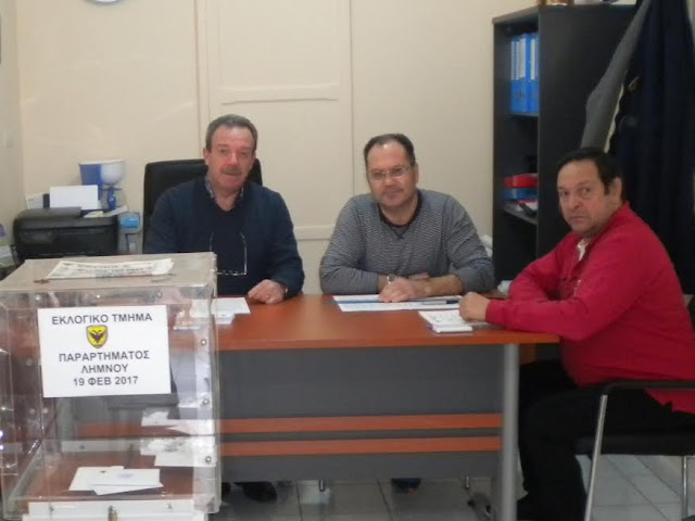 Μαζική ήταν η προσέλευση των μελών του Παραρτήματος της Ε.Α.Α.Σ/Λήμνου (ποσοστό συμμετοχής 90,63%), σήμερα 19 Φεβρουαρίου 2017, ημέρα εκλογών για την ανάδειξη του νέου Δ.Σ της ΈνωσηςnΑποστράτων Αξιωματικών Στρατού.