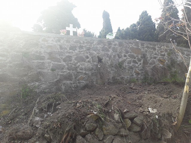 Με βάση λοιπόν τα όσα επικαλούνται οι κάτοικοι της περιοχής, από το 2015 το τοιχίο της περίφραξης του κοιμητηρίου έχει υποστεί τεράστιες ζημιές και πια σχεδόν δεν υπάρχει, με αποτέλεσμα να δημιουργούνται τάφοι σε νέο τμήμα γης.