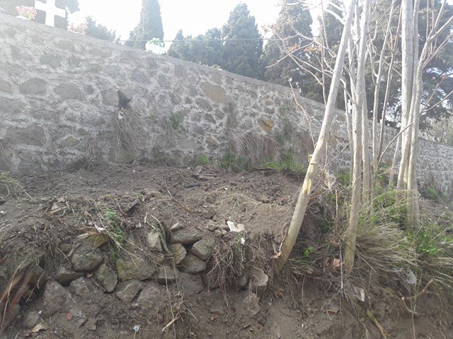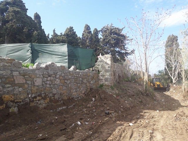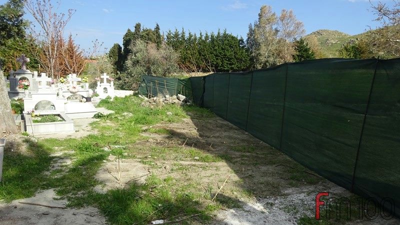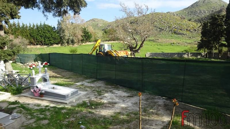 Παράλληλα σήμερα συνεργείο του Δήμου έχει προχωρήσει σε προσωρινή οριοθέτηση του κοιμητηρίου με πασσάλους και πλέγμα, ενώ μηχάνημα καθάριζε τα ρέμα από τα σκουπίδια που υπήρχαν.
