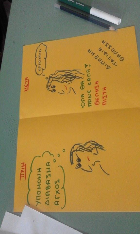 Οι μαθητές μέσα απο βιωματικές δραστηριότητες είχαν την ευκαιρία να ενημερωθούν για τα συμπτώματα και τις επιπτώσεις του άγχους, να εξασκηθούν σε τεχνικές διαχείρισης του, να μετουσιώσουν τις αρνητικές τους σκέψεις σε θετικές και να οραματιστούν τον μελλοντικό εαυτό τους.