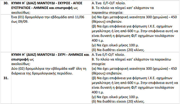 γραμμές που δεν συμπίπτουν με τις γραμμές των συμβάσεων που συνάπτονται με την παρούσα πρόσκληση, έστω και εάν υπάρχουν κοινές αναφορές σε νησί ή νησιά.