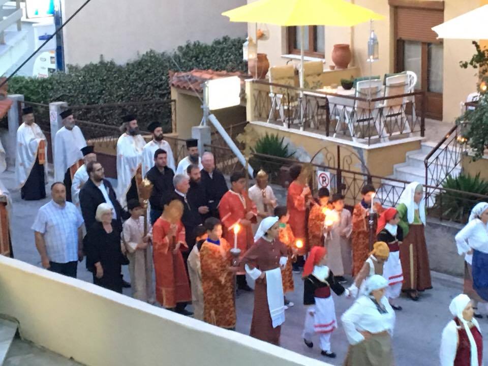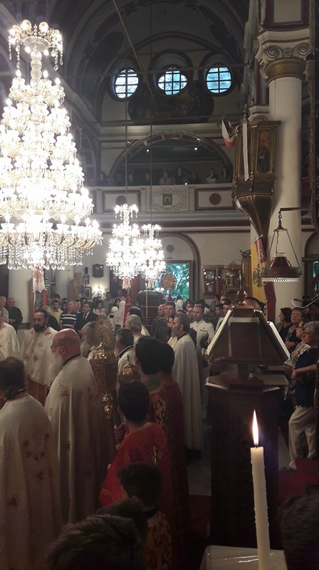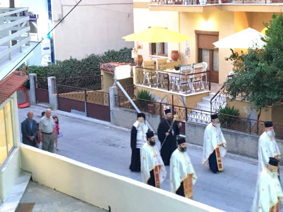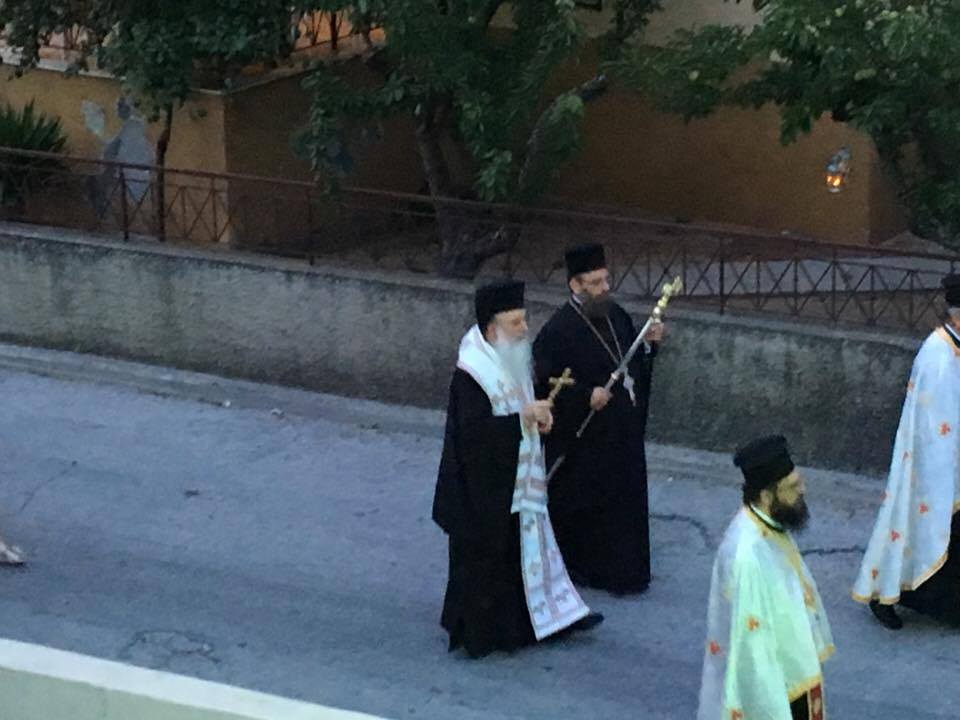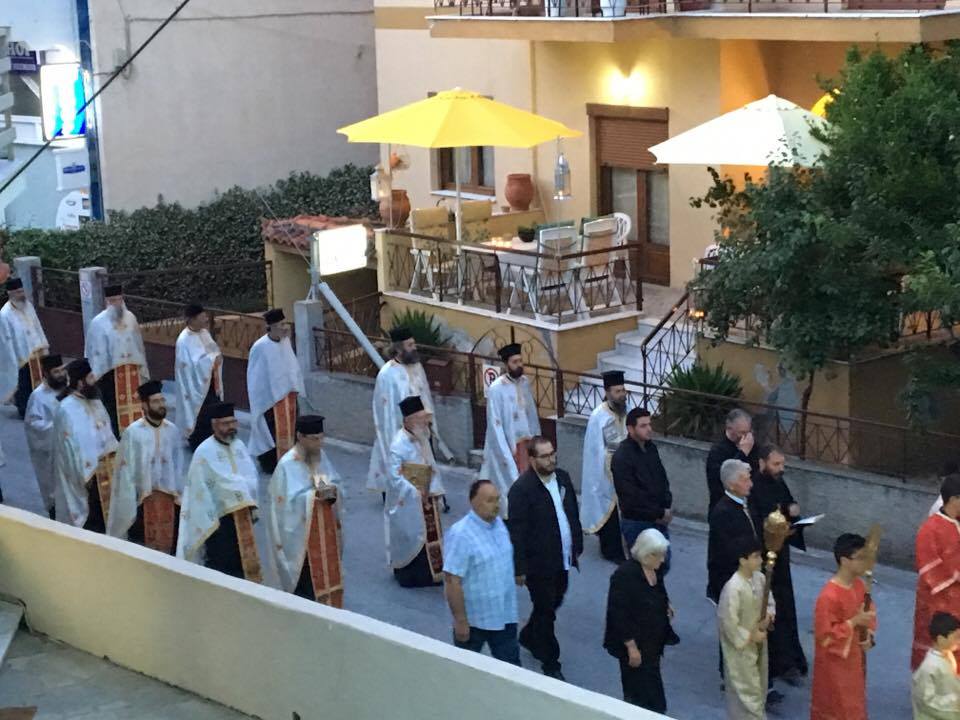 Στις 7 το απόγευμα, τελέστηκε Μέγας Πανηγυρικός Αρχιερατικός Εσπερινός και σε λίγη ώρα θα ακολουθήσει περιφορά της εορταζούσης εικόνας και Αρτοκλασία.